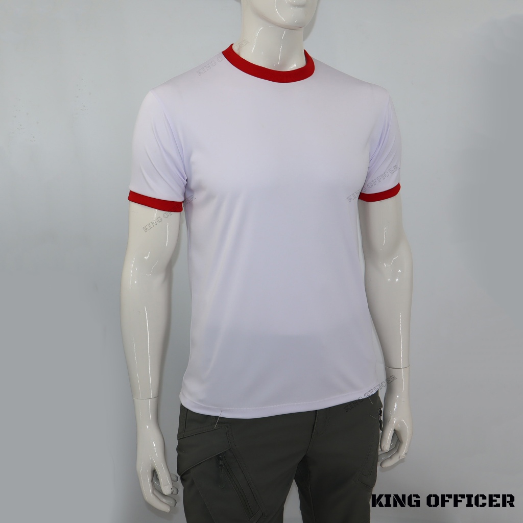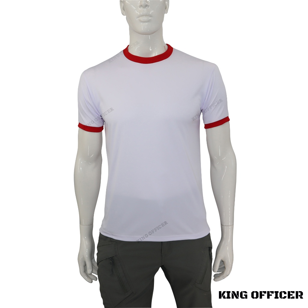 เสื้อทหารคอแดง ทม. ผ้านาโน ผ้ามัน เสื้อรองใน ทหารบก ทหารเรือ ทหารอากาศ รักษาพระองค์ สีขาว คอกลม แขนสั้น