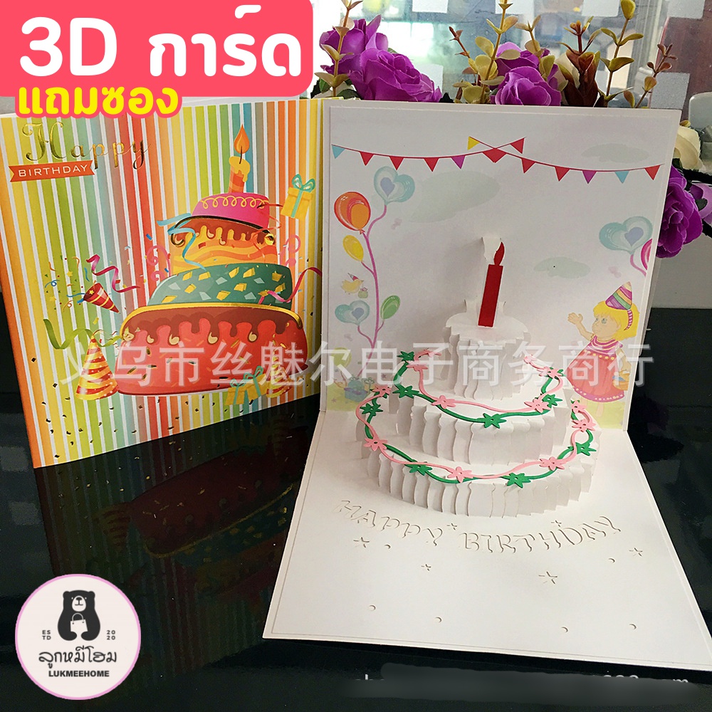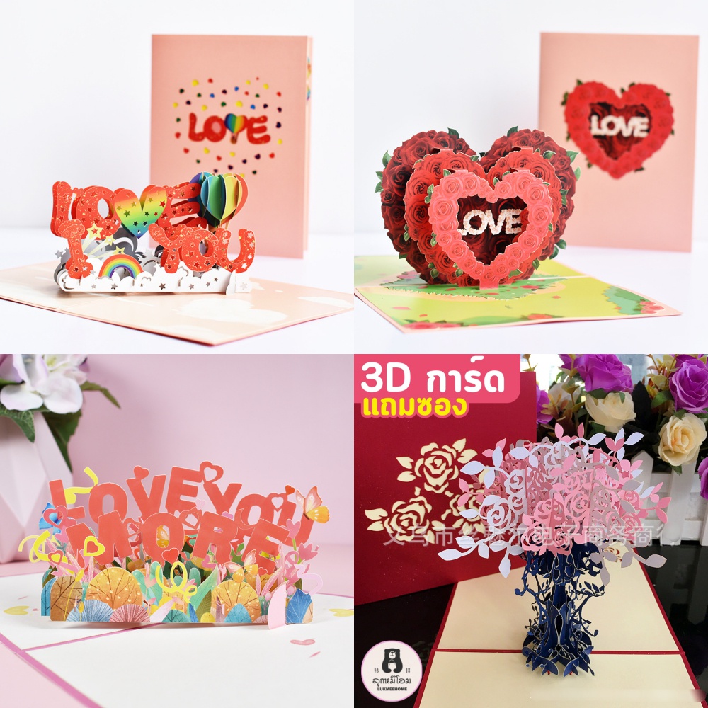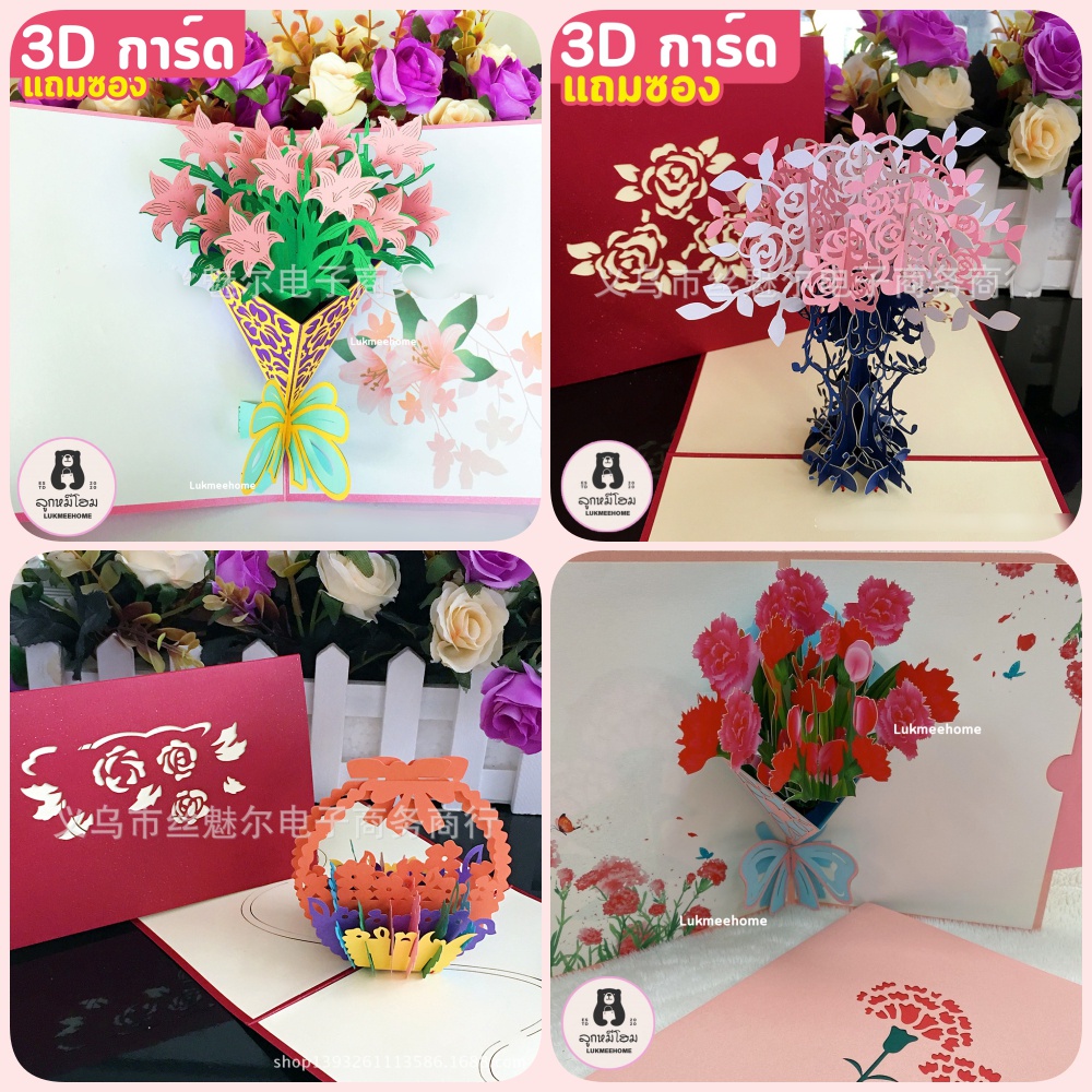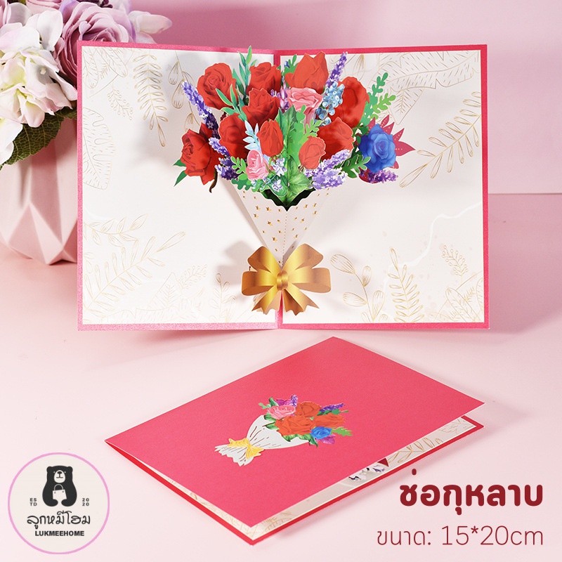 (พร้อมส่ง)การ์ดอวยพรวันเกิด🎂 Birthday Card Pop up 3D card การ์ดป๊อปอัพ 3มิติ ดอกไม้ วาเลนไทน์