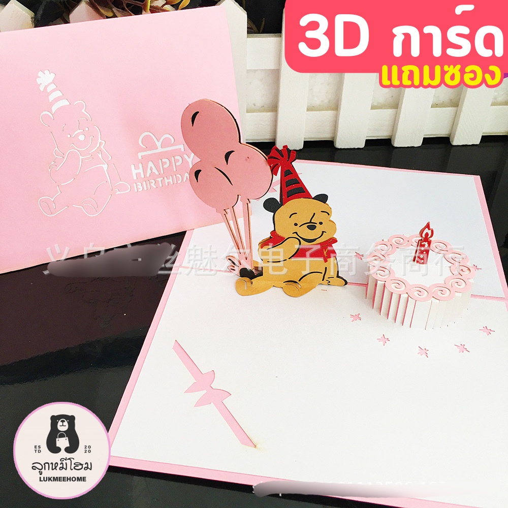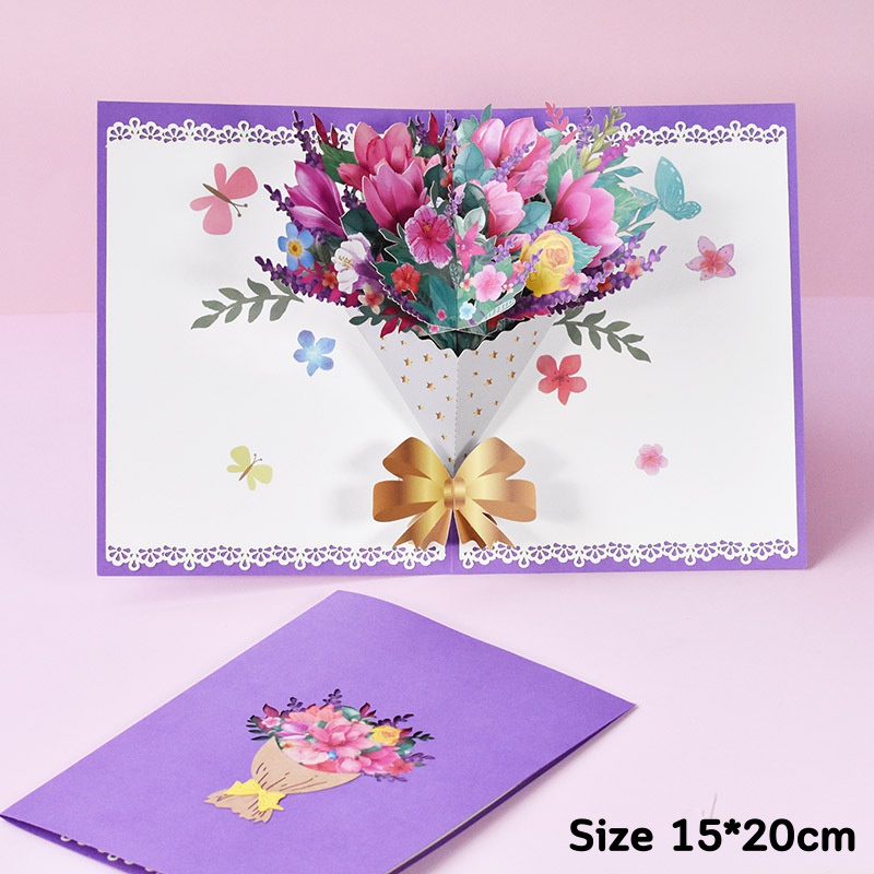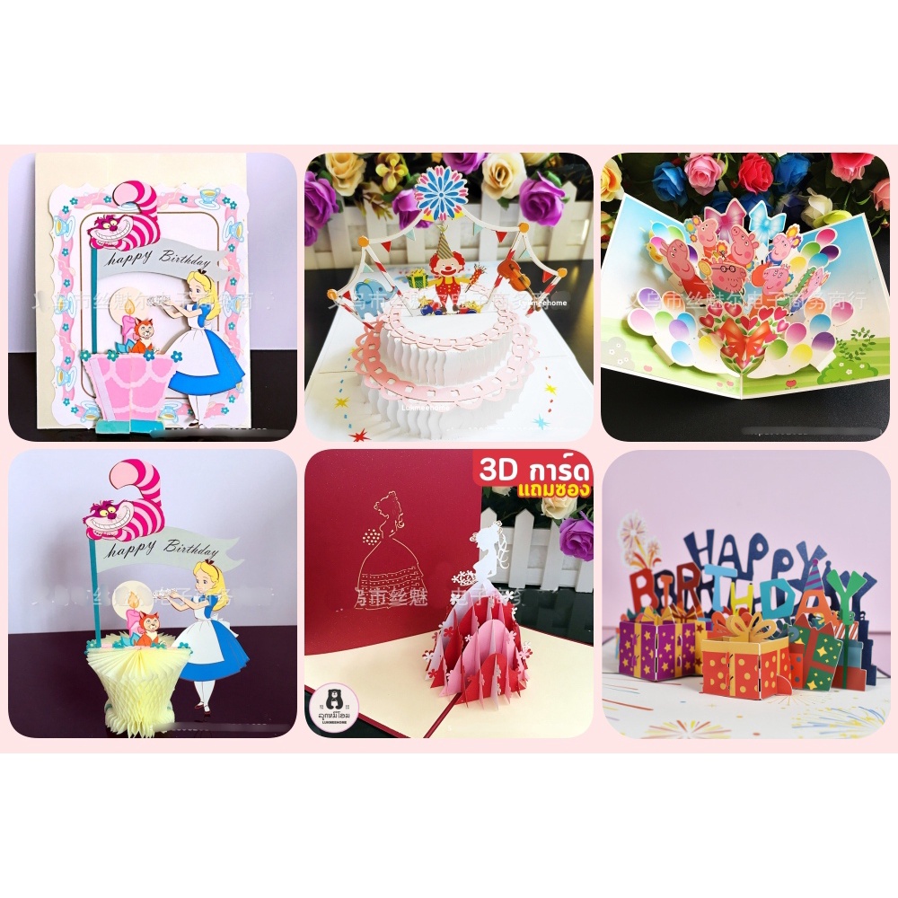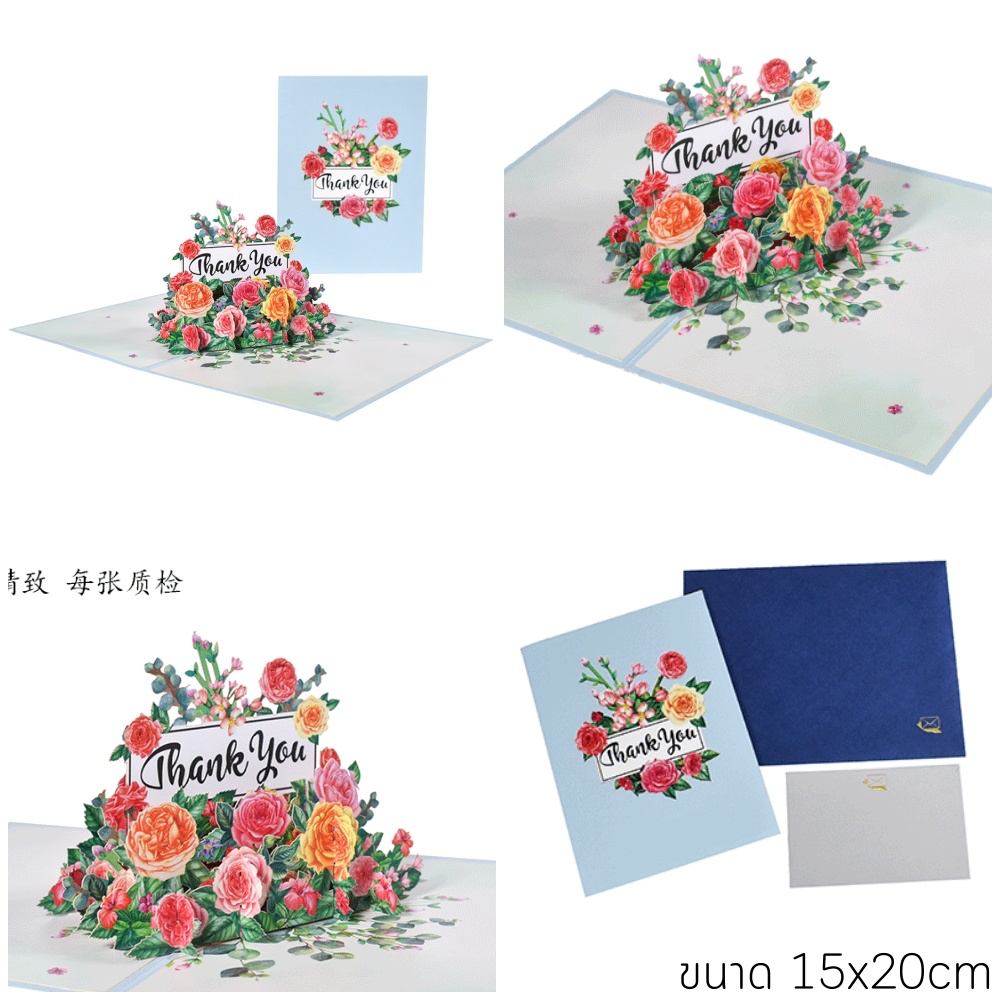 (พร้อมส่ง)การ์ดอวยพรวันเกิด🎂 Birthday Card Pop up 3D card การ์ดป๊อปอัพ 3มิติ ดอกไม้ วาเลนไทน์