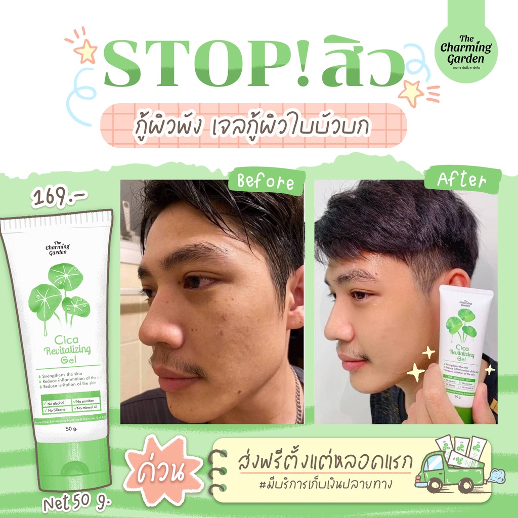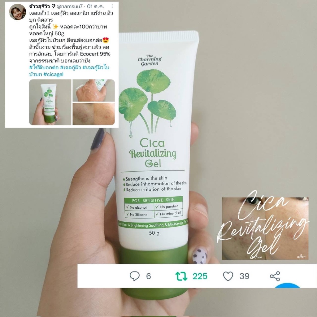 ซิก้า เจลกู้ผิว ใบบัวบก เจลมะเขือเทศ สูตรออแกนิก Cica Revitalizing Gel เจลซ่อมผิว เจล สบู่ 50g. ของแท้!