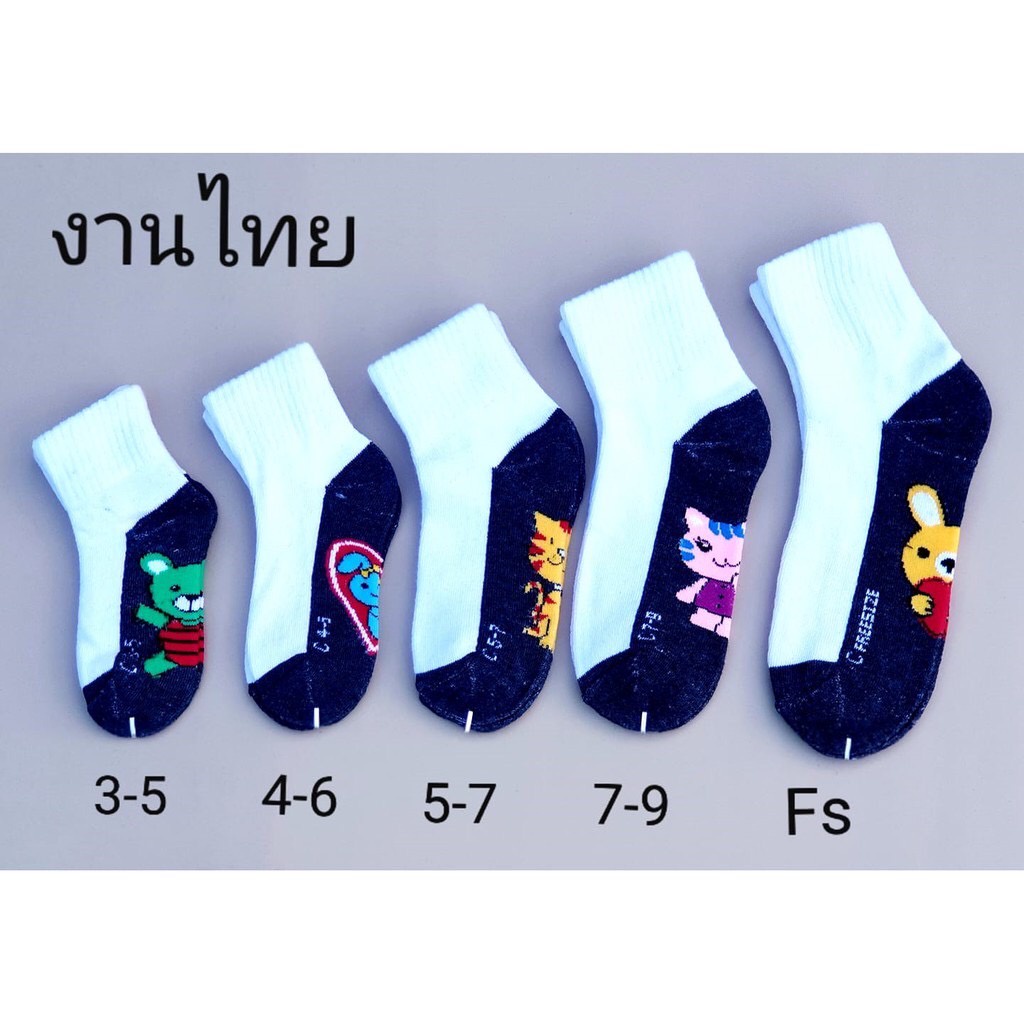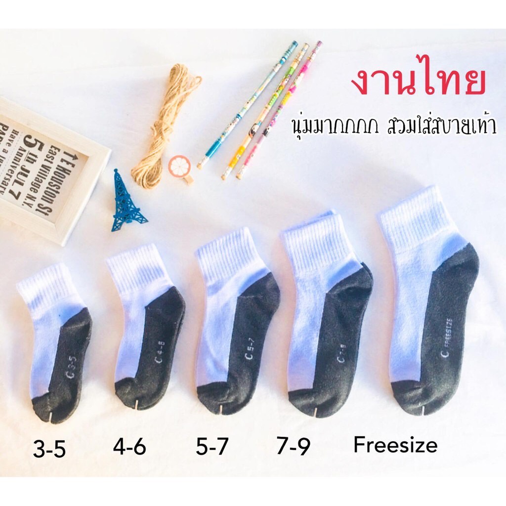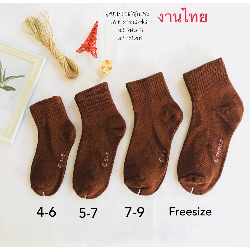 ถุงเท้านักเรียนพื้นการ์ตูน ขาวพื้นเทา กันลื่น สีน้ำตาล งายไทย พร้อมส่ง จัดส่งไว