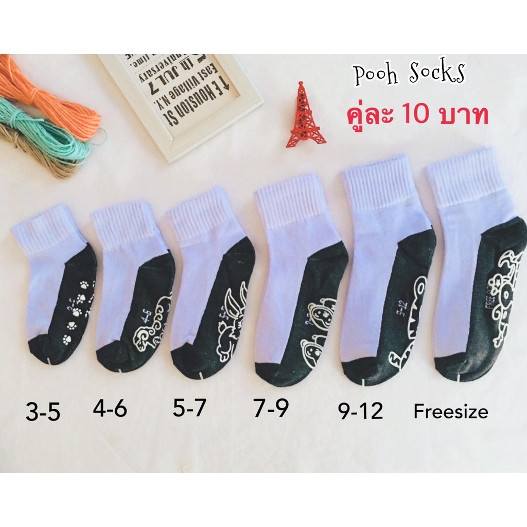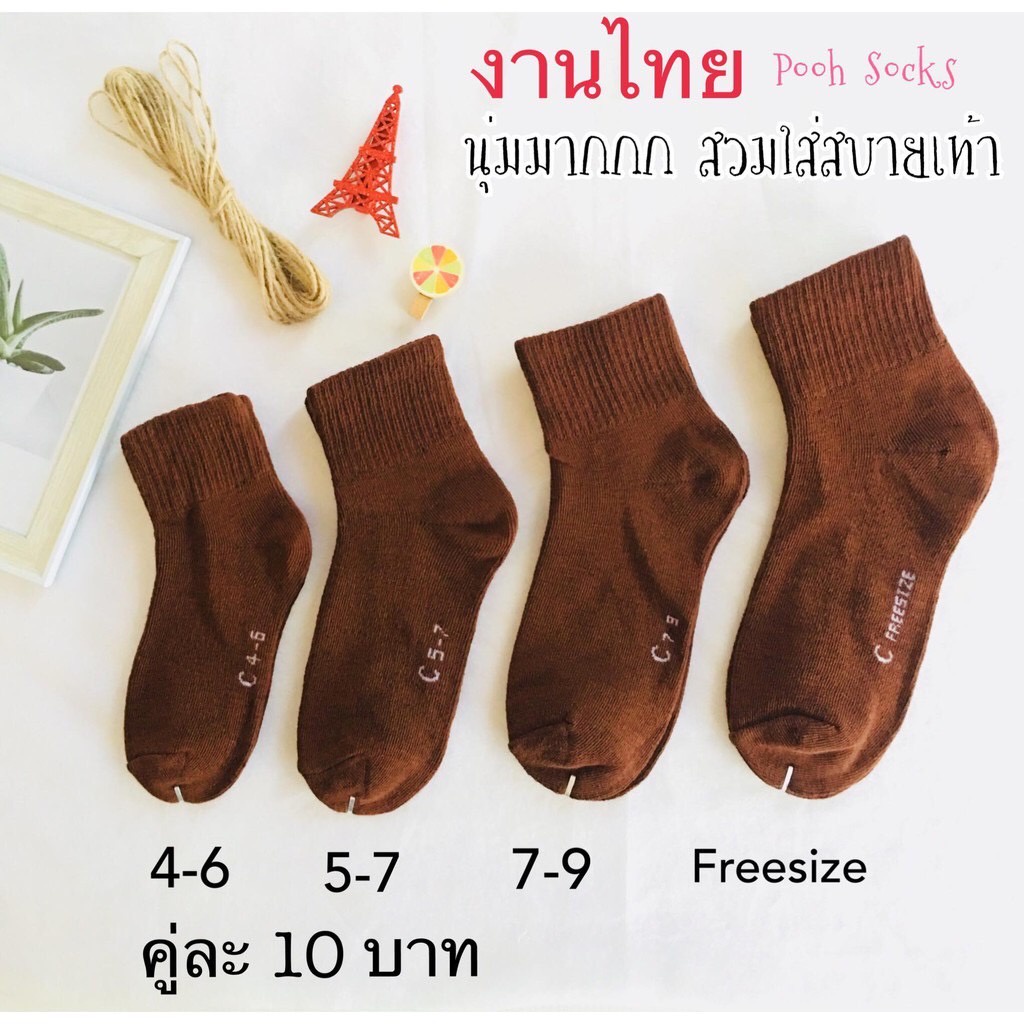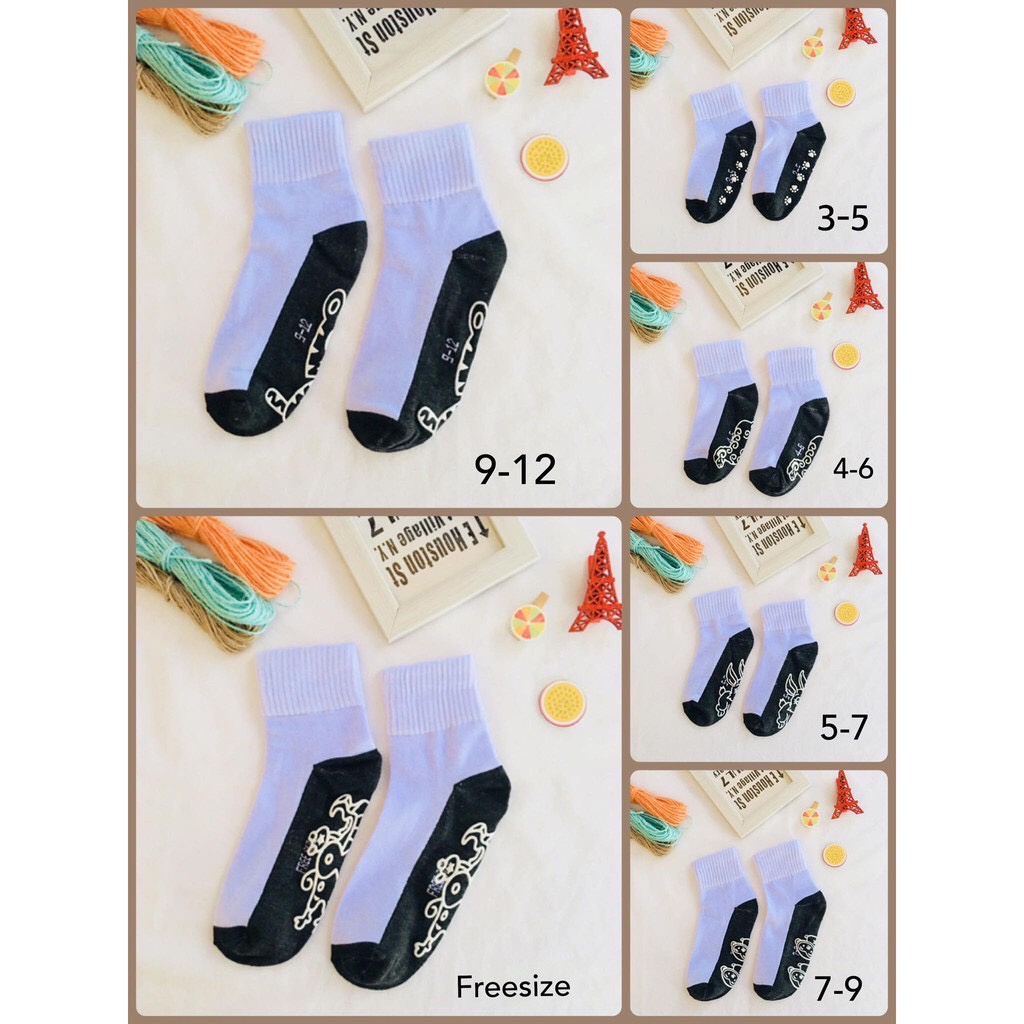 ถุงเท้านักเรียนพื้นการ์ตูน ขาวพื้นเทา กันลื่น สีน้ำตาล งายไทย พร้อมส่ง จัดส่งไว