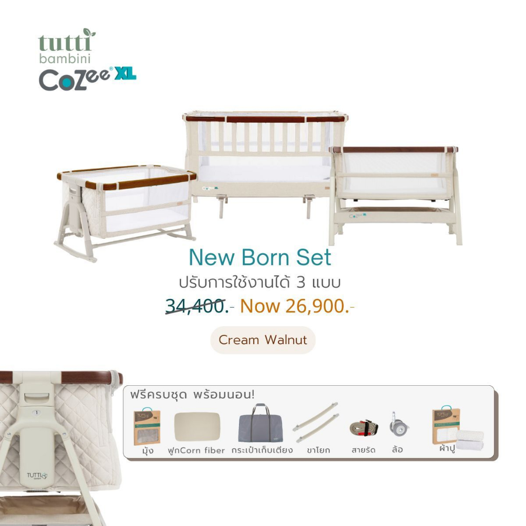 Tutti Bambini เตียงเด็ก Cozee XL 5-in-1 แถมฟรี มุ้ง+ผ้าปูที่นอน+ฟูกหายใจผ่านได้ สำหรับ Bedside Crib