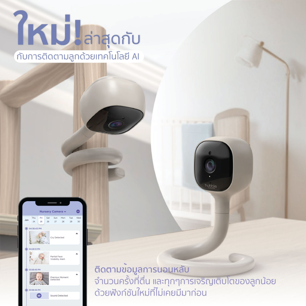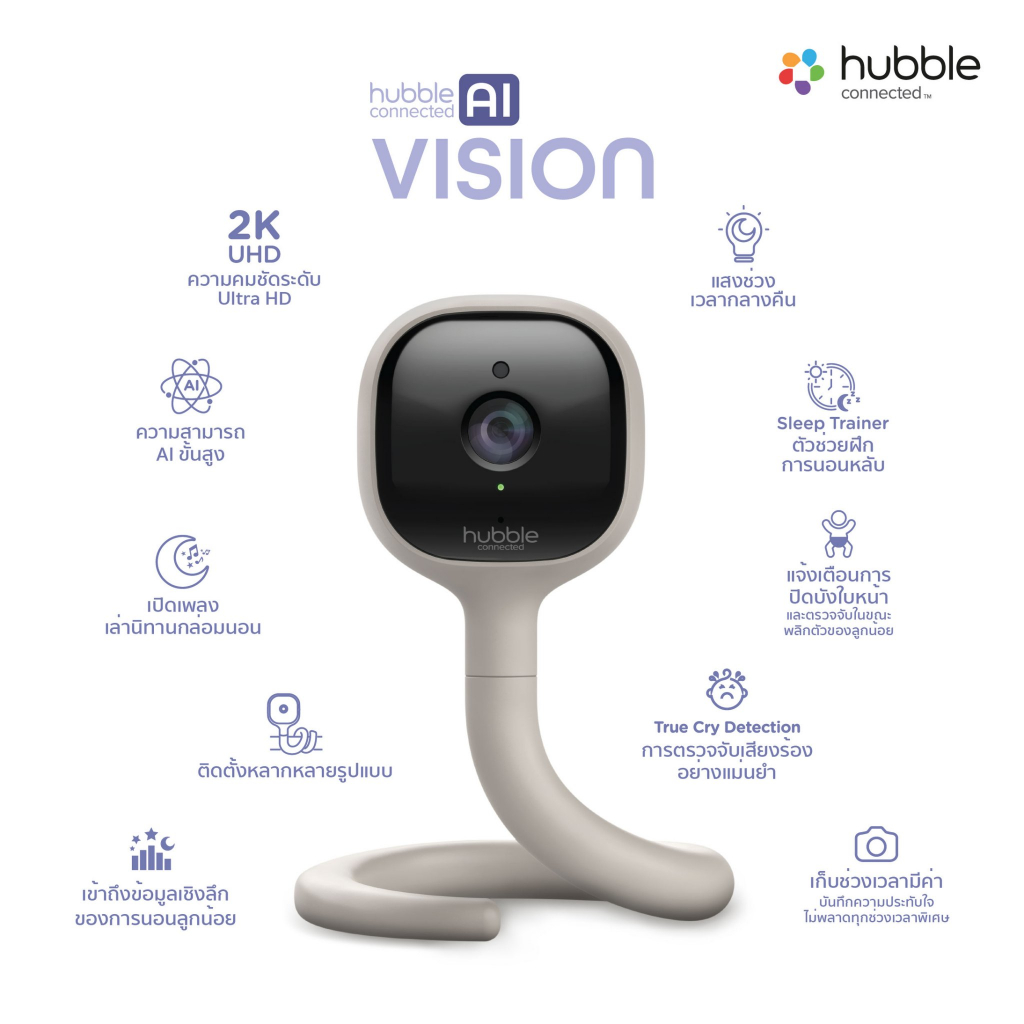 Hubble กล้องเบบี้มอนิเตอร์รุ่น Ai Vision / 4 Ai Feature / ตรวจจับเสียงร้อง / วิเคราะห์ข้อมูลการนอน