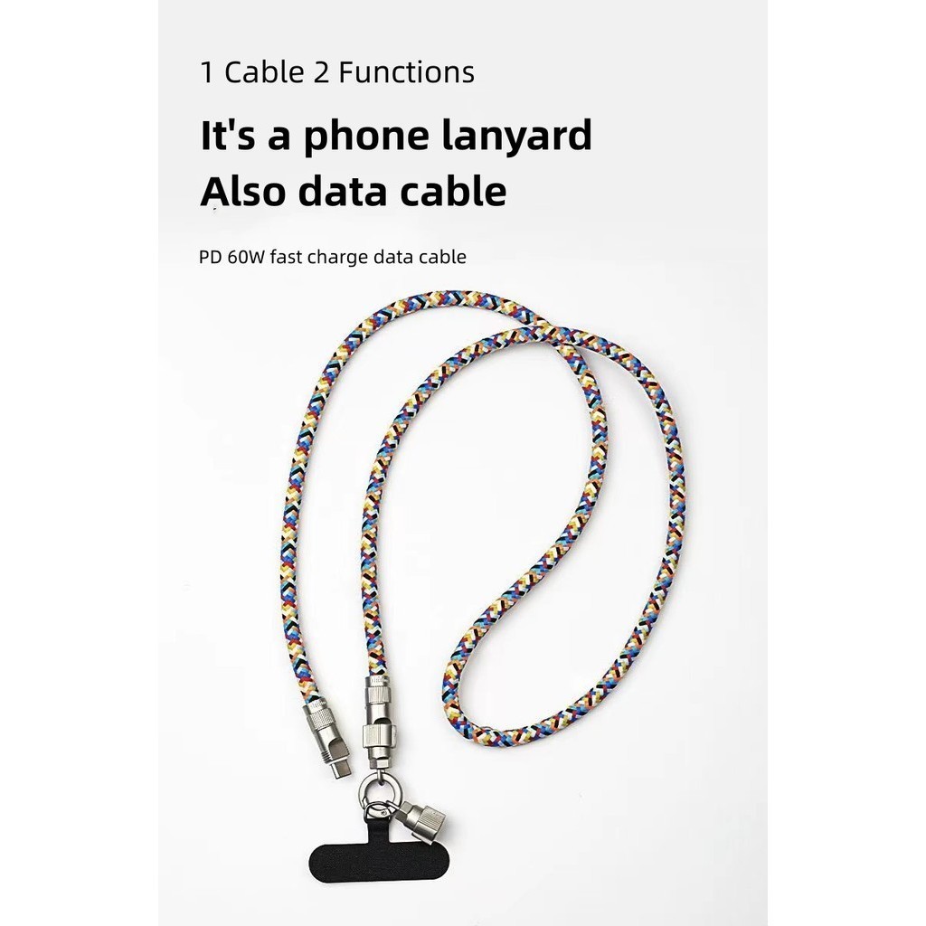 60w สายคล้องโทรศัพท์มือถือสายชาร์จ Type-C/IP สายชาร์จโซ่โทรศัพท์มือถือ Lanyard สายชาร์จ