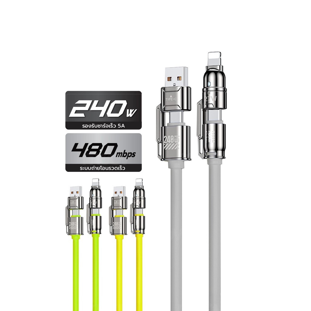 CB055 สายชาร์จ Type C to Type C 4-in-1 USB/L-Cable ชาร์จเร็ว Fast Charge PD 240W โน๊ตบุ๊ค