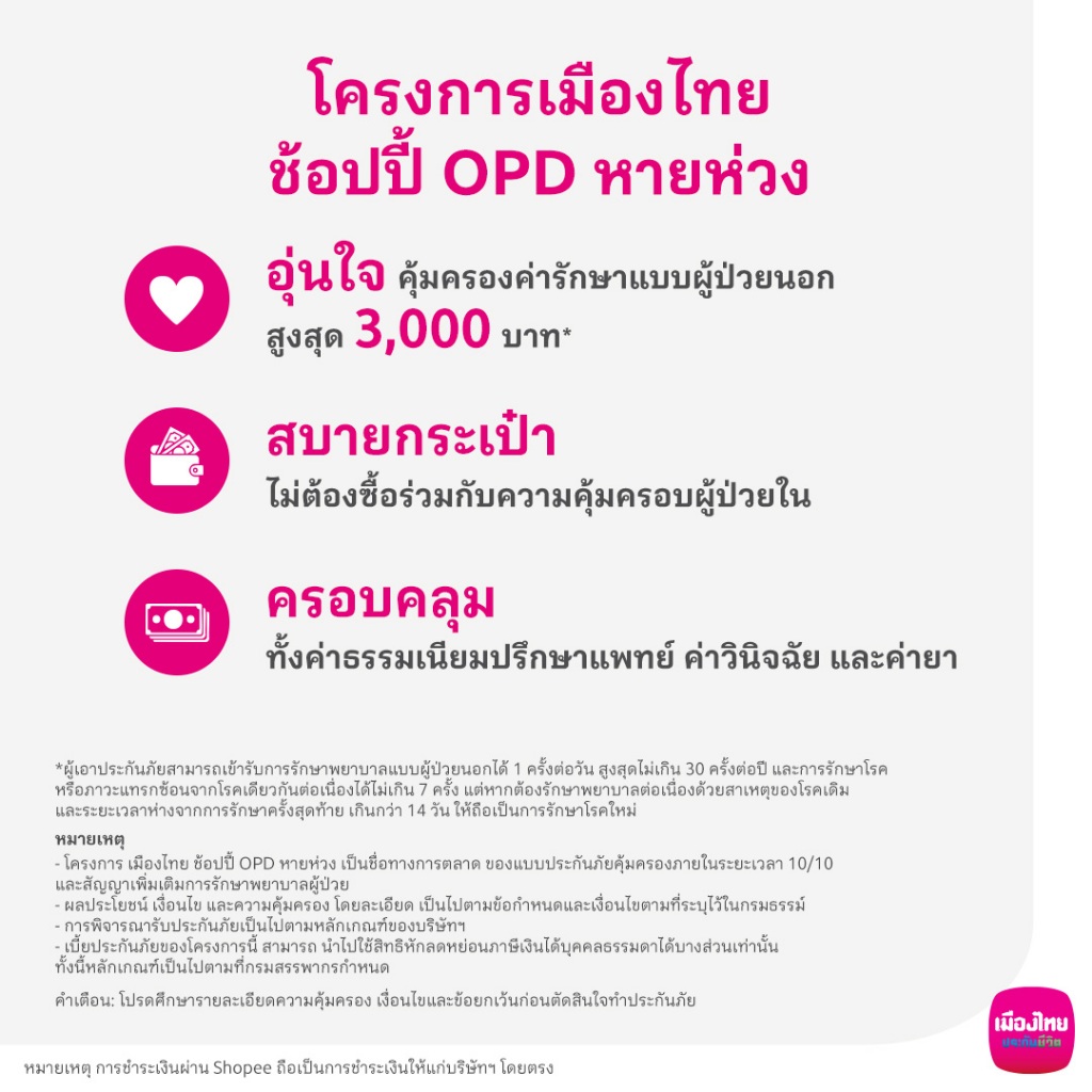 [E-Voucher] เมืองไทย ช้อปปี้ OPD หายห่วง 2,000 บาท