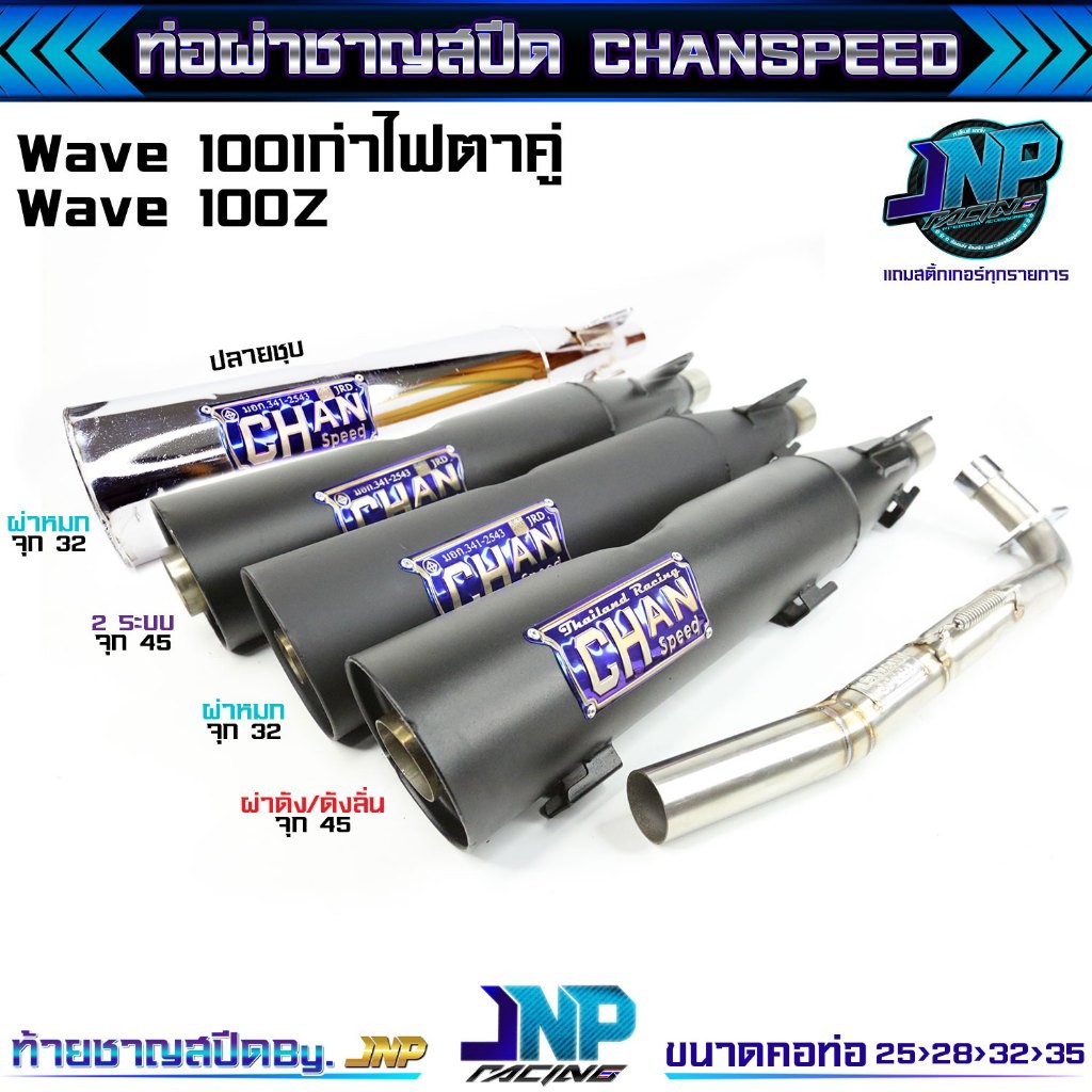 ท่อผ่า2เสียง เวฟ100 ปรับเสียงได้ CHAN ชาญสปีด คอท่อไล่สปริง25-35จุก38 ใส้ Wave110คาร์บู 100เก่า 100z