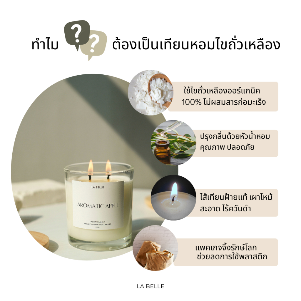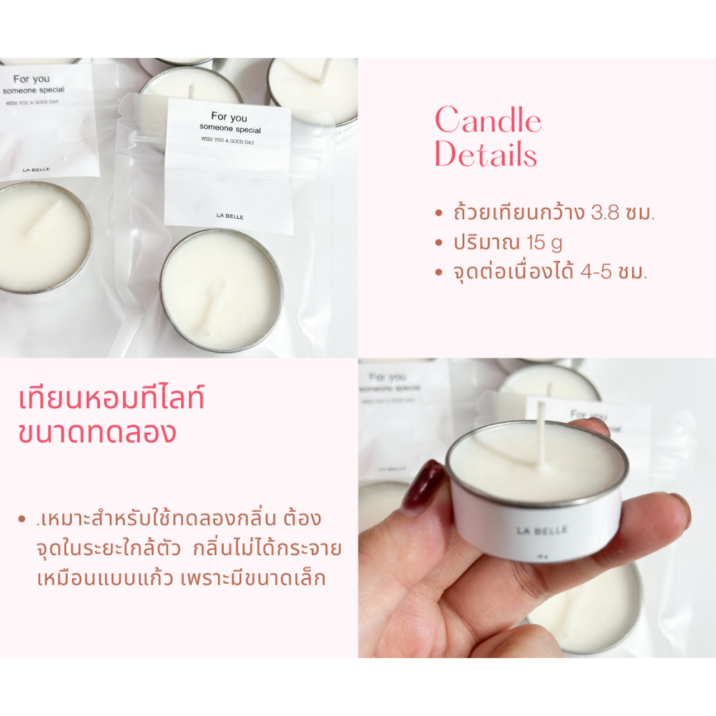 LA BELLE เทียนหอมทีไลท์ เทียนหอมไขถั่วเหลืองออร์แกนิค เกรดพรีเมี่ยม