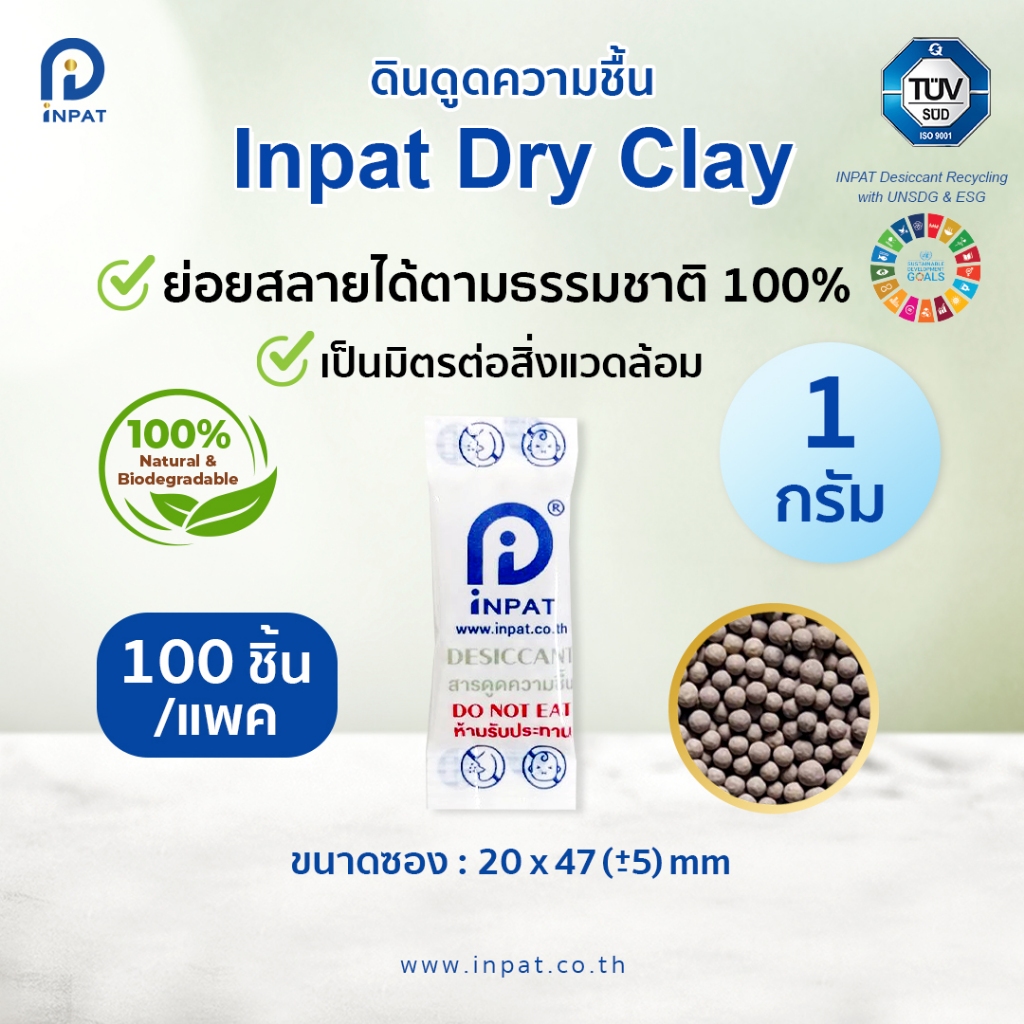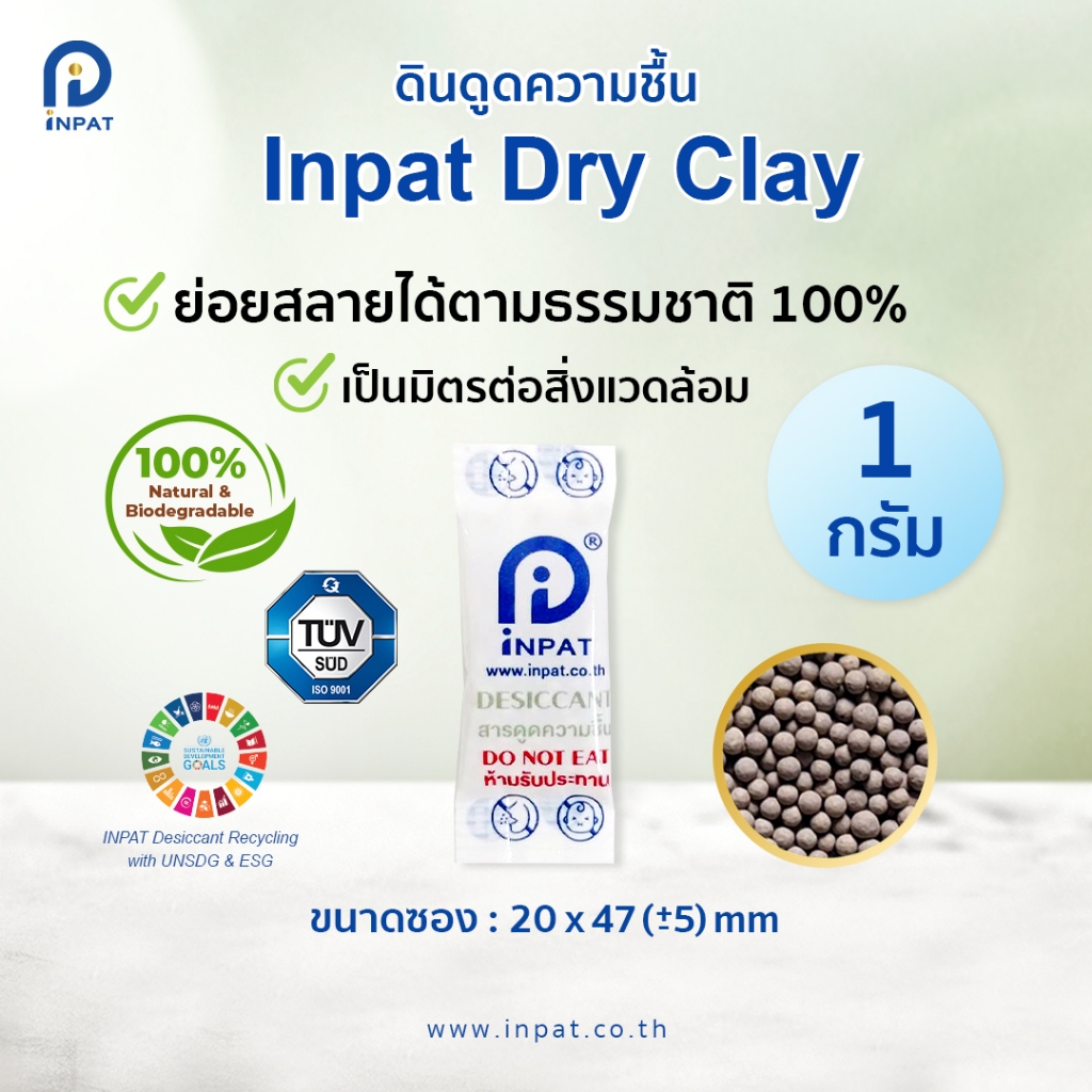สารกันชื้น ดินดูดความชื้น 1 กรัม Food Grade ย่อยสลายตามธรรมชาติได้ 100% - Inpat Dry Clay