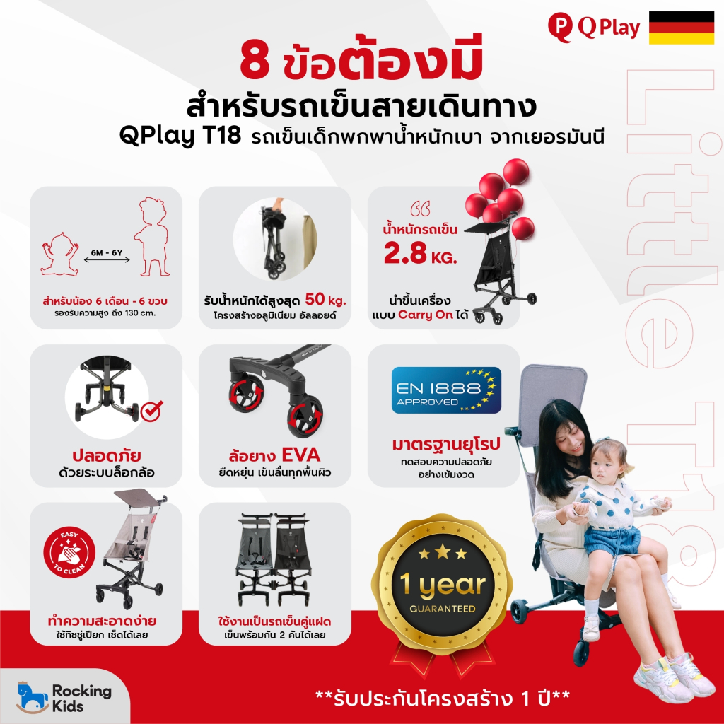 [พร้อมส่ง] รถเข็นเด็ก รถเข็นเด็กพกพา Qplay - T18 รถเข็นเด็กพับได้ น้ำหนักเบา 2.8 Kg เด็ก 6 เดือนขึ้นไป ขึ้นเครื่องได้