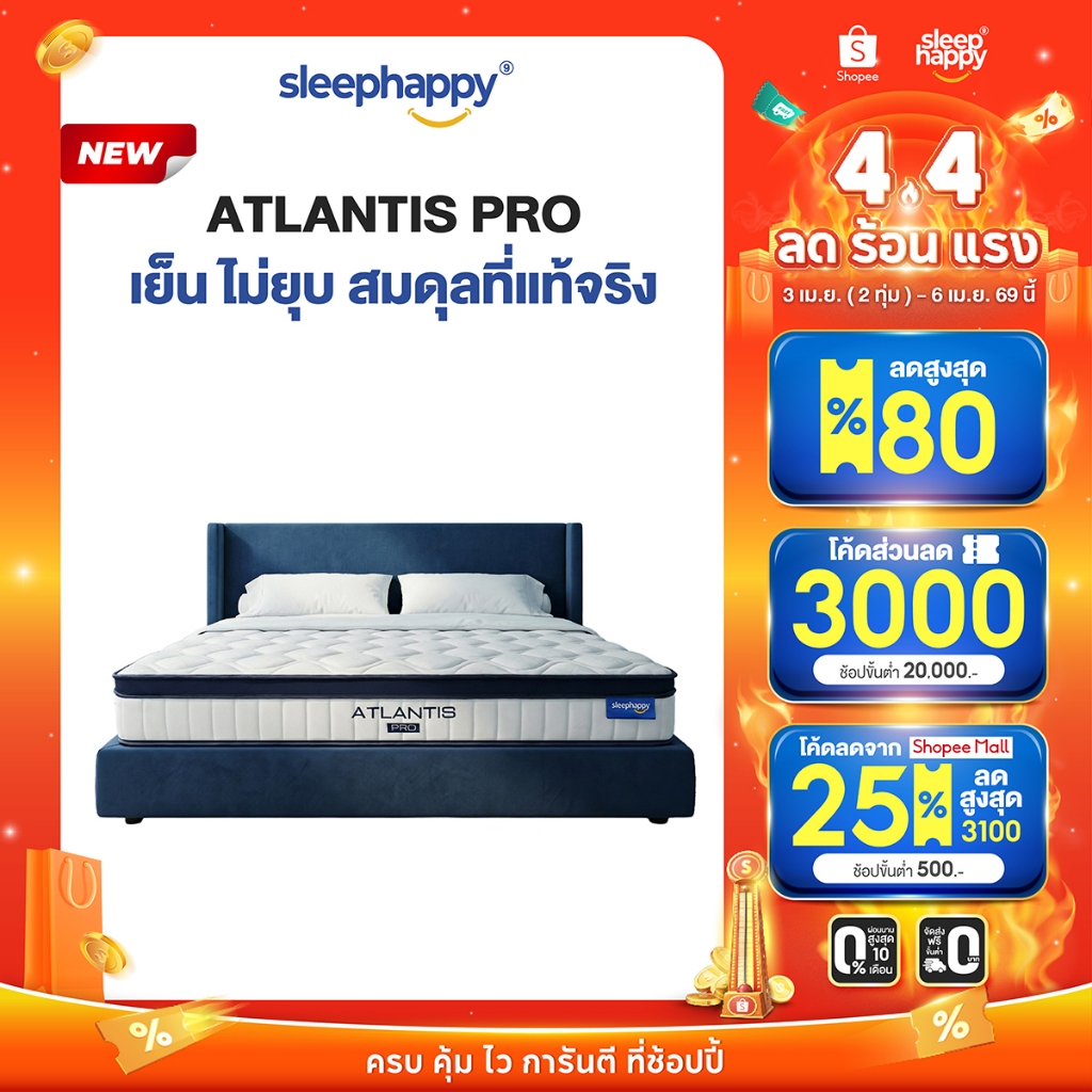 SleepHappy ที่นอนพ็อกเก็ตสปริงสัมผัสเย็น รุ่น Atlantis Pro หนา 10 นิ้ว และ Atlantis Lite หนา 8 นิ้ว