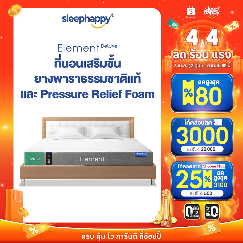 SleepHappy ที่นอนยางพาราแท้ รุ่น Element Deluxe หนา 7 นิ้ว และ Element Lite หนา 6 นิ้ว และ 4 นิ้ว ที่นอนเพื่อสุขภาพ
