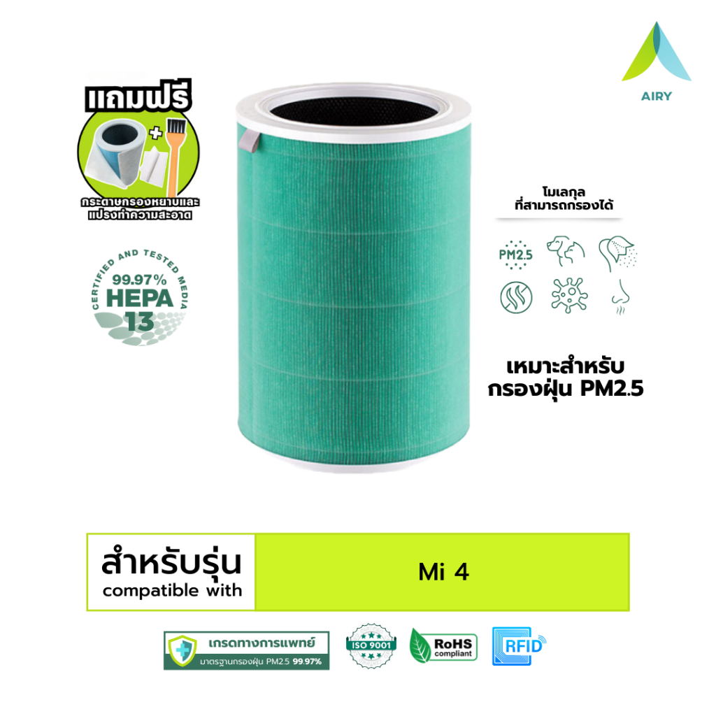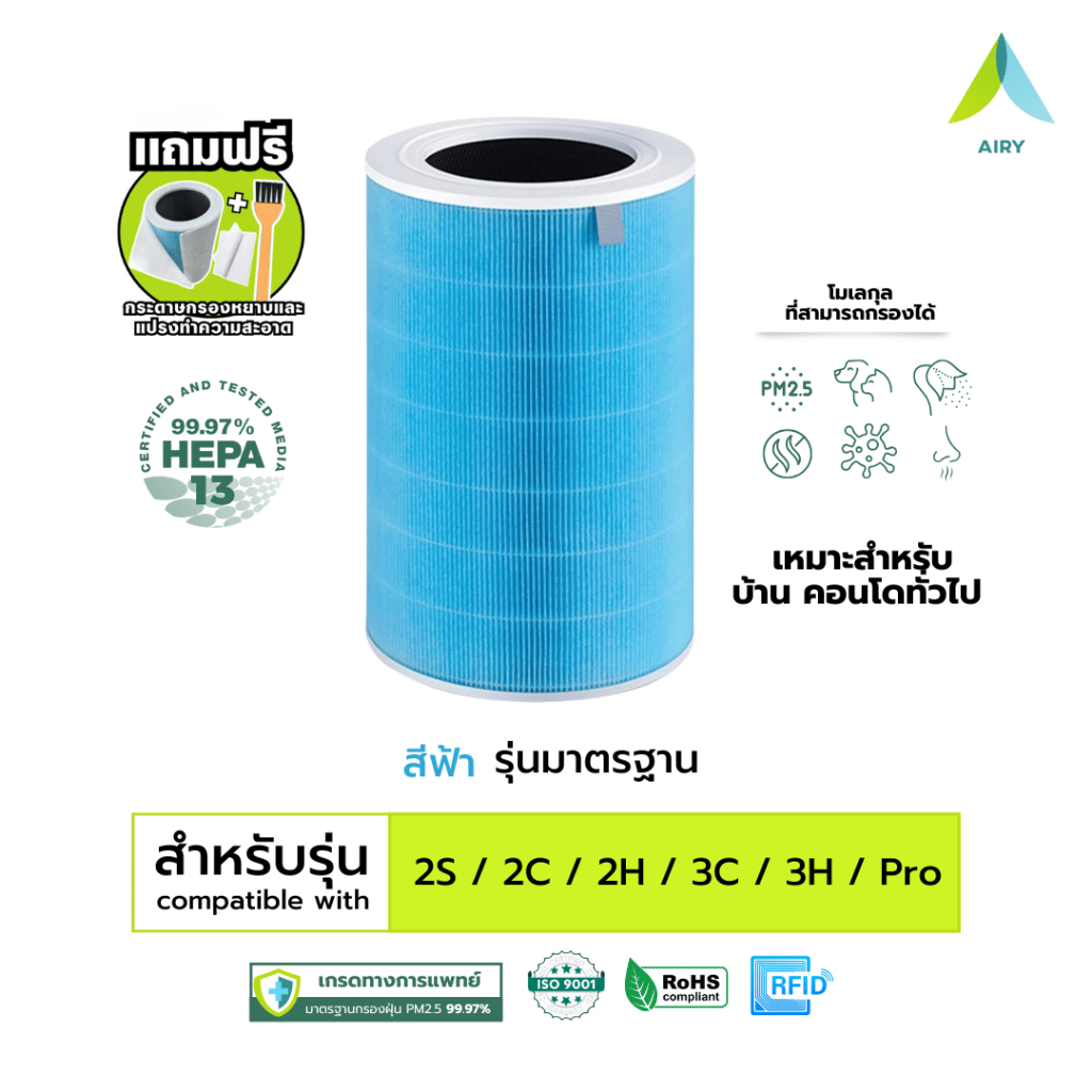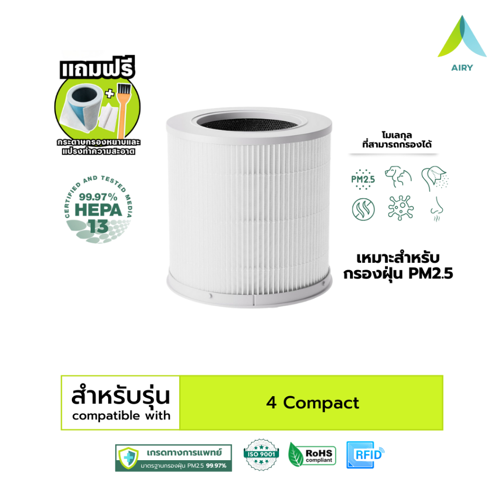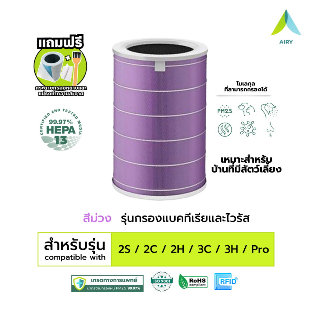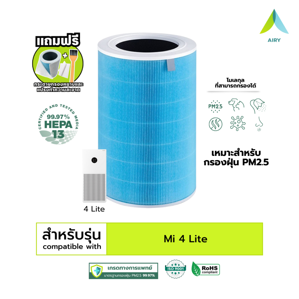 (H13 เกรดการแพทย์) Mi 2C 2H 2S 3C 3H 4 Compact 4 4Lite ไส้กรองอากาศ ไส้กรอง ฝุ่น PM2.5 ไวรัส อากาศ