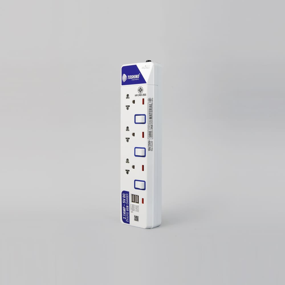 รางปลั๊กไฟ 3 ช่อง 3 สวิตซ์ 2 USB ยาว 3 ม. ET-913USB TOSHINO