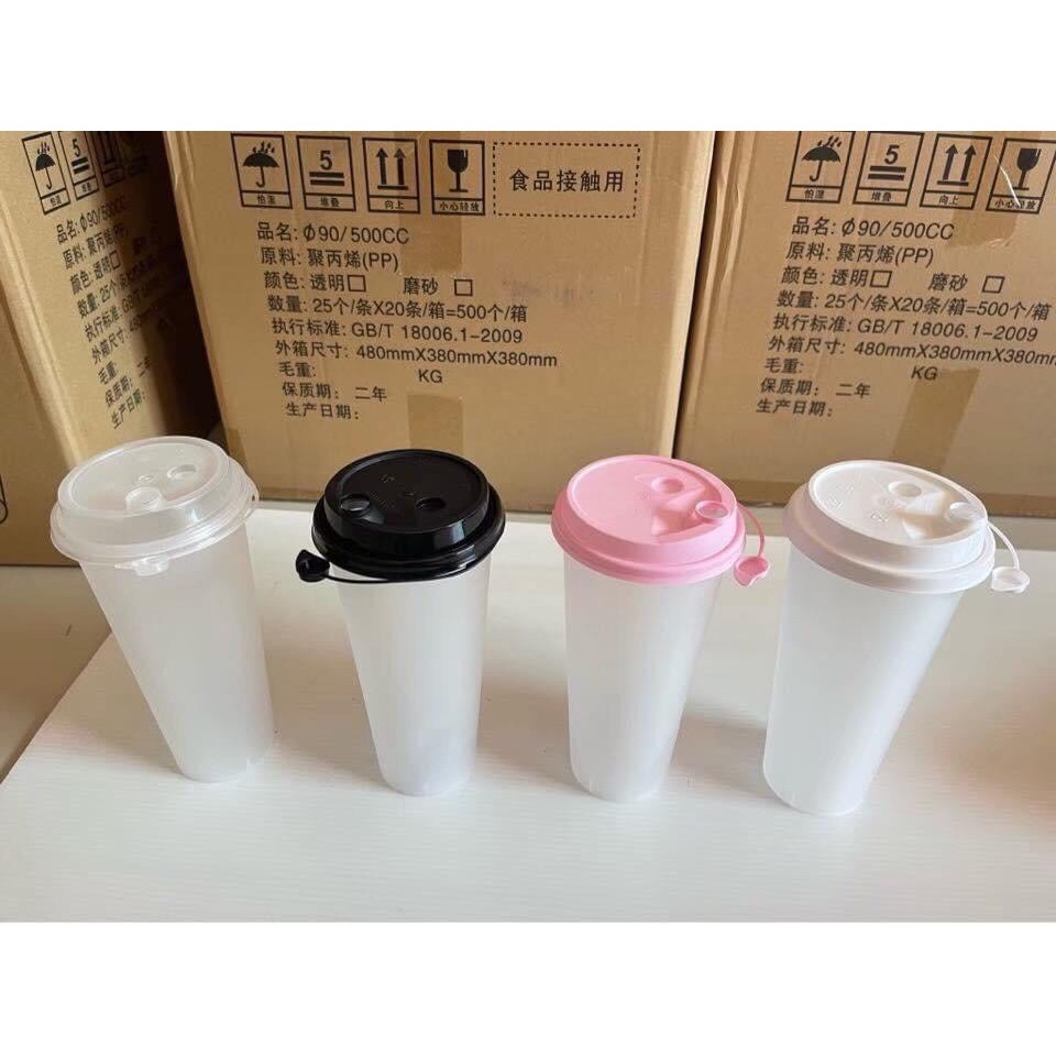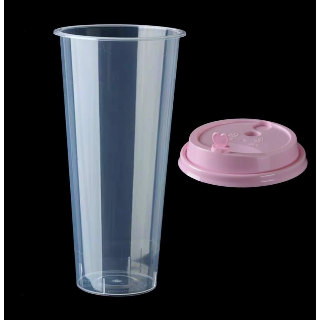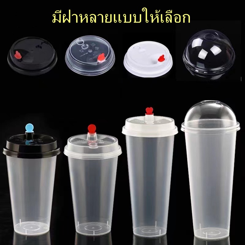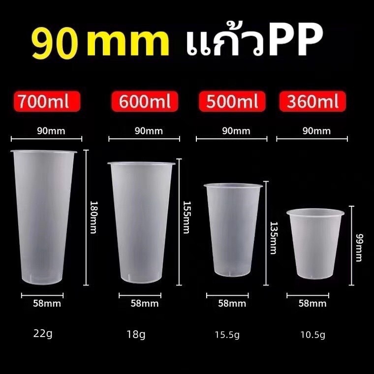 TH แก้วPPพร้อมฝา【25ชุด】]แก้วกาแฟชานมไข่มุกพลาสติกใสทรงแข็งใช้แล้วทิ้ง 90 มิลลิเมตรเหมาะกับร้านชานมไข่มุก ร้านกาแฟ