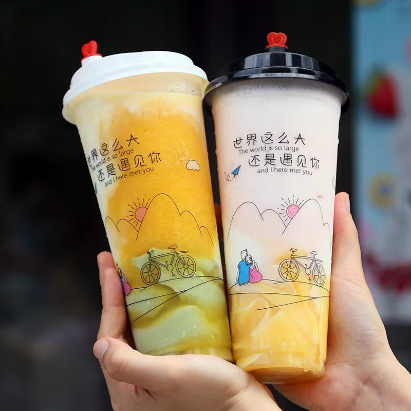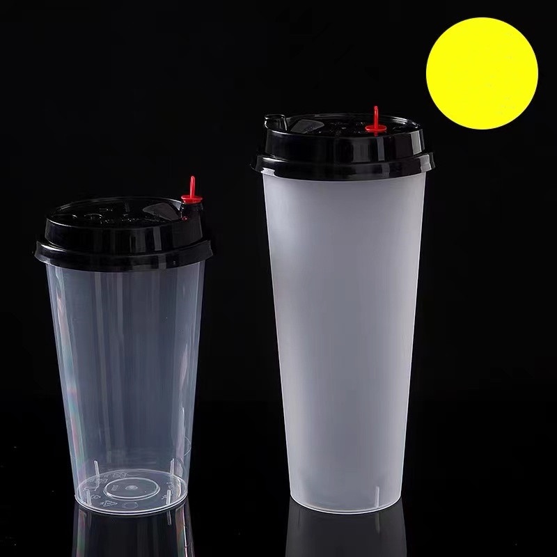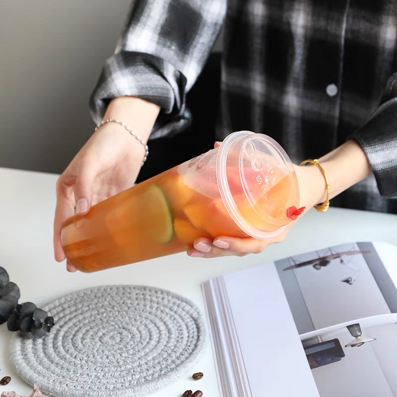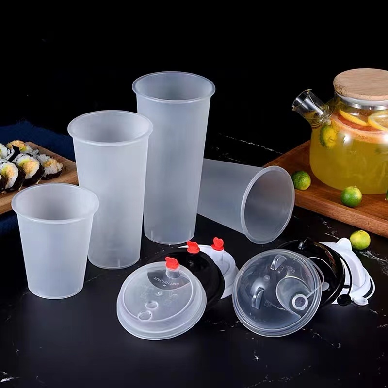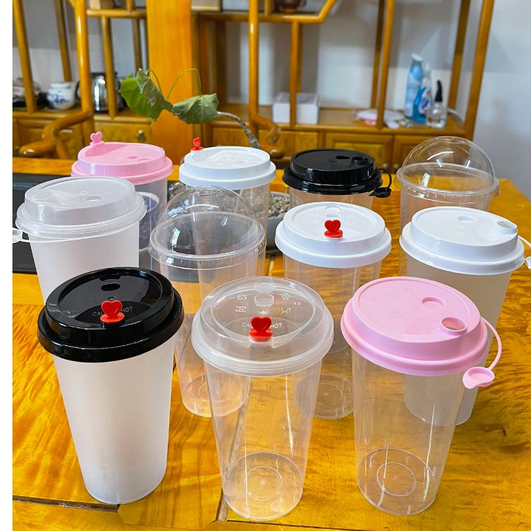 TH แก้วPPพร้อมฝา【25ชุด】]แก้วกาแฟชานมไข่มุกพลาสติกใสทรงแข็งใช้แล้วทิ้ง 90 มิลลิเมตรเหมาะกับร้านชานมไข่มุก ร้านกาแฟ