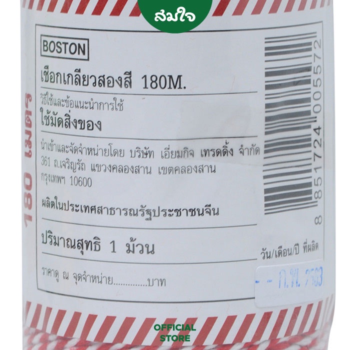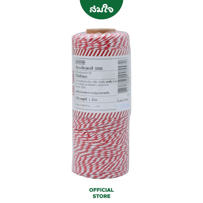 Boston (บอสตัน) เชือกเกลียวขาวแดง เชือกไปรษณีย์ ยาว 180 เมตร ความหนา 3 มม.