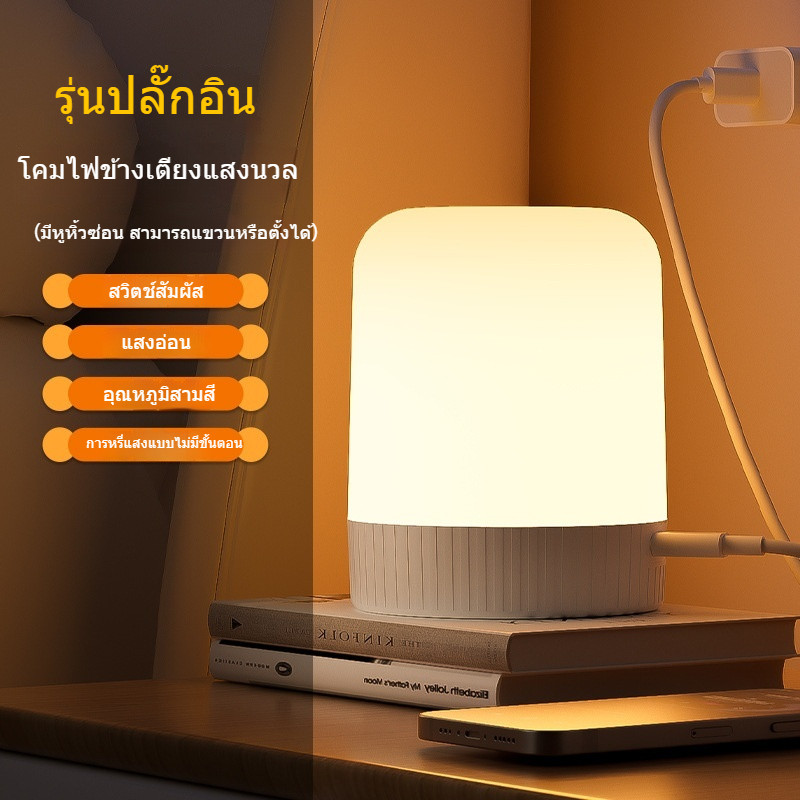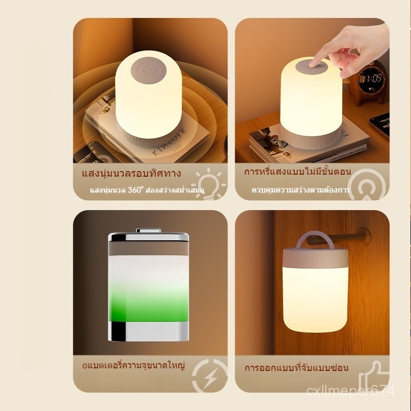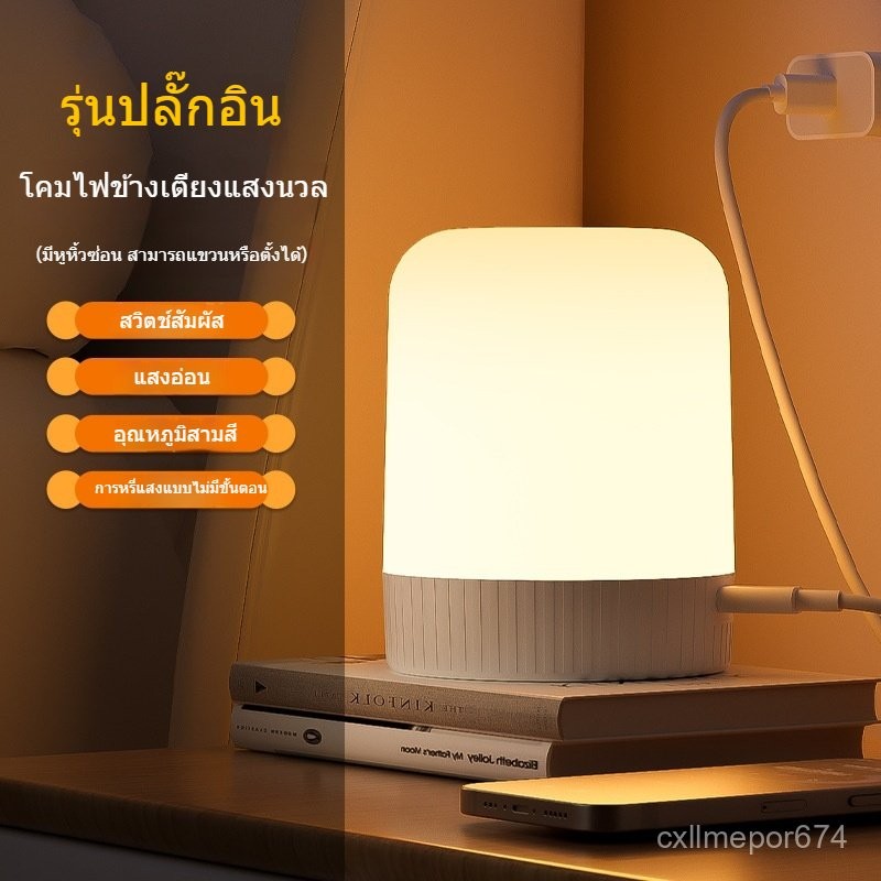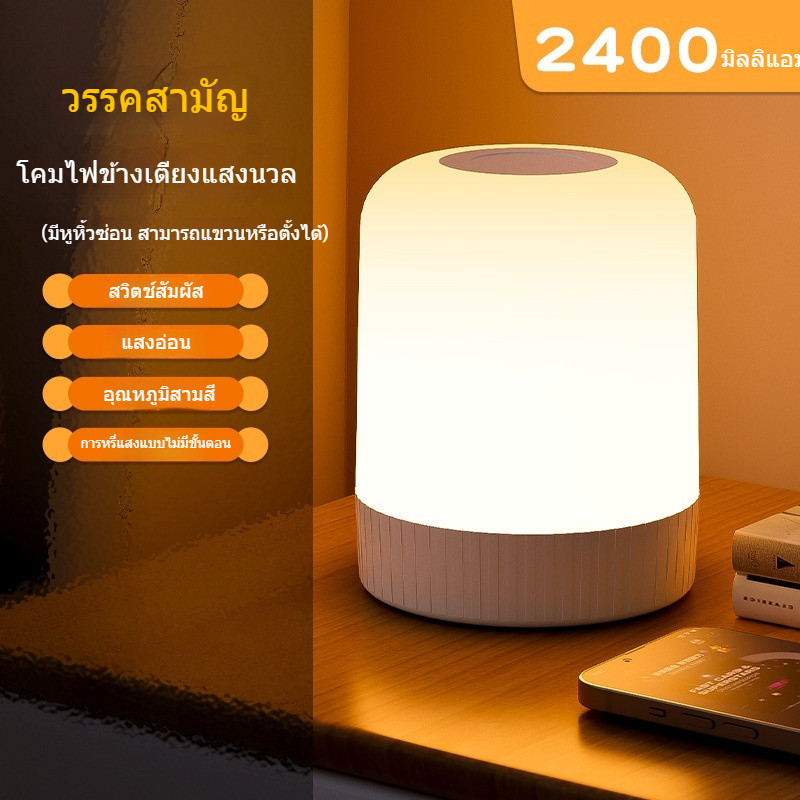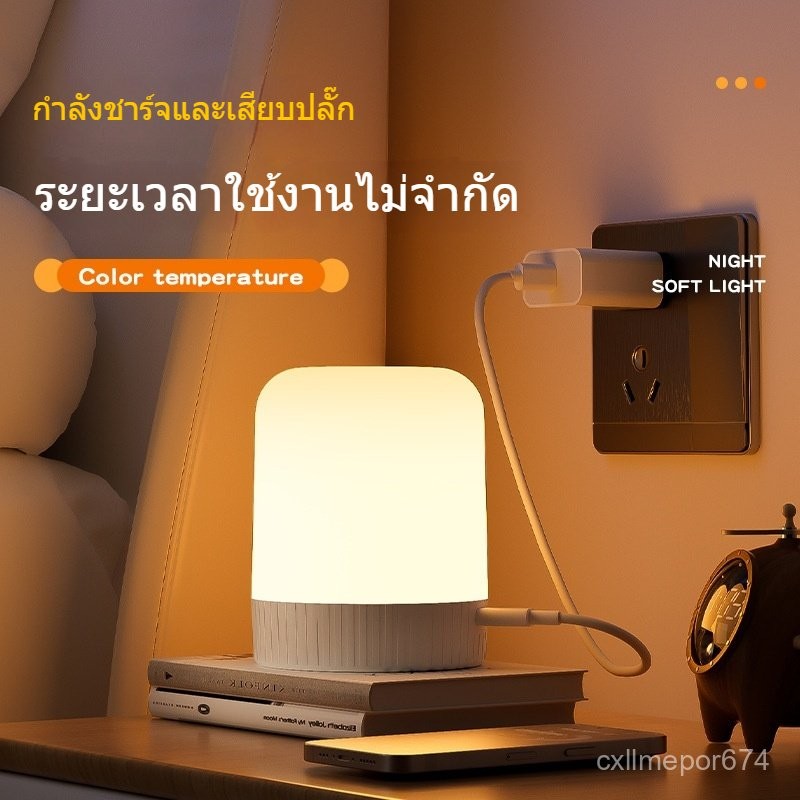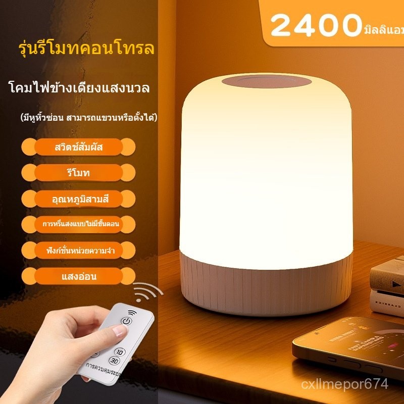 โคมไฟกลางคืนควบคุมระยะไกล โคมไฟข้างเตียง โคมไฟตั้งโต๊ะแบบชาร์จได้ปรับความสว่างได้สามระดับ โคมไฟบรรยากาศ LED ถนอมสายตา
