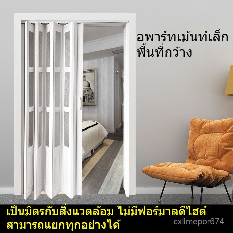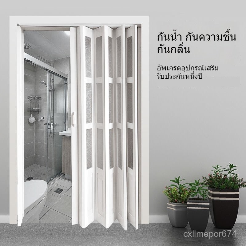ประตูพับ PVC ฉากกั้นห้องน้ำแบบเปิด ประตูเลื่อนเรียบง่ายสำหรับร้านค้าในครัว PGBJ