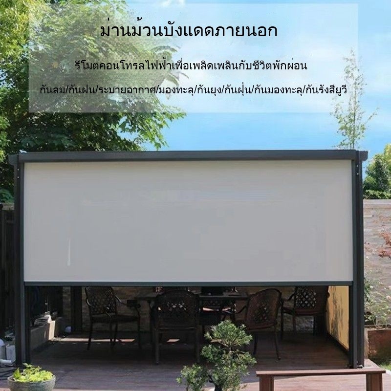 ผ้าม่านม้วนกันลมไฟฟ้า ม่านบังแดด กันน้ำ กันยุง กันฝุ่น สำหรับวิลล่า ศาลา ลาน ระเบียง ม่านม้วนกันลม NAC7