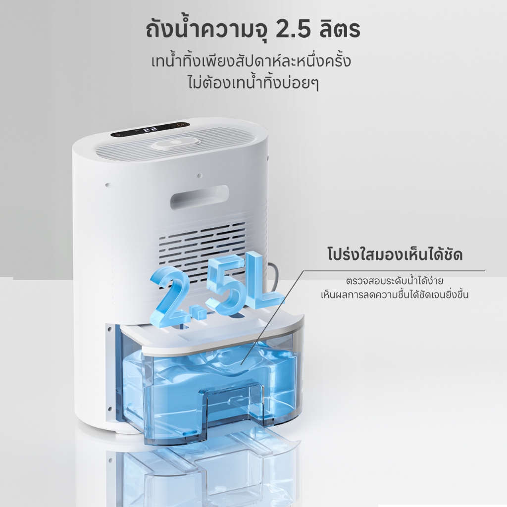 ⚡พร้อมส่ง⚡Simplus เครื่องลดความชื้น ขนาด 400 มล./วัน ความจุ 2.5 ลิตร ถังน้ำใหญ่ ระบบเงียบ 40dB เหมาะสำห รับห้องนอน ห้องน้ำ และห้องทำงาน LiteDry C7 CUSH007