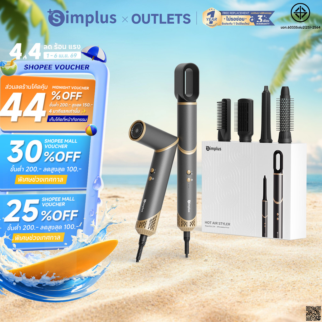 Simplus Pink TurboStyle R1 เครื่องเป่าผมแปรง 5-in-1 Multifunctional Styler ผม Curler Straightener เครื่องเป่าผมความเร็วสูง Ionic Hair Care RFSH003