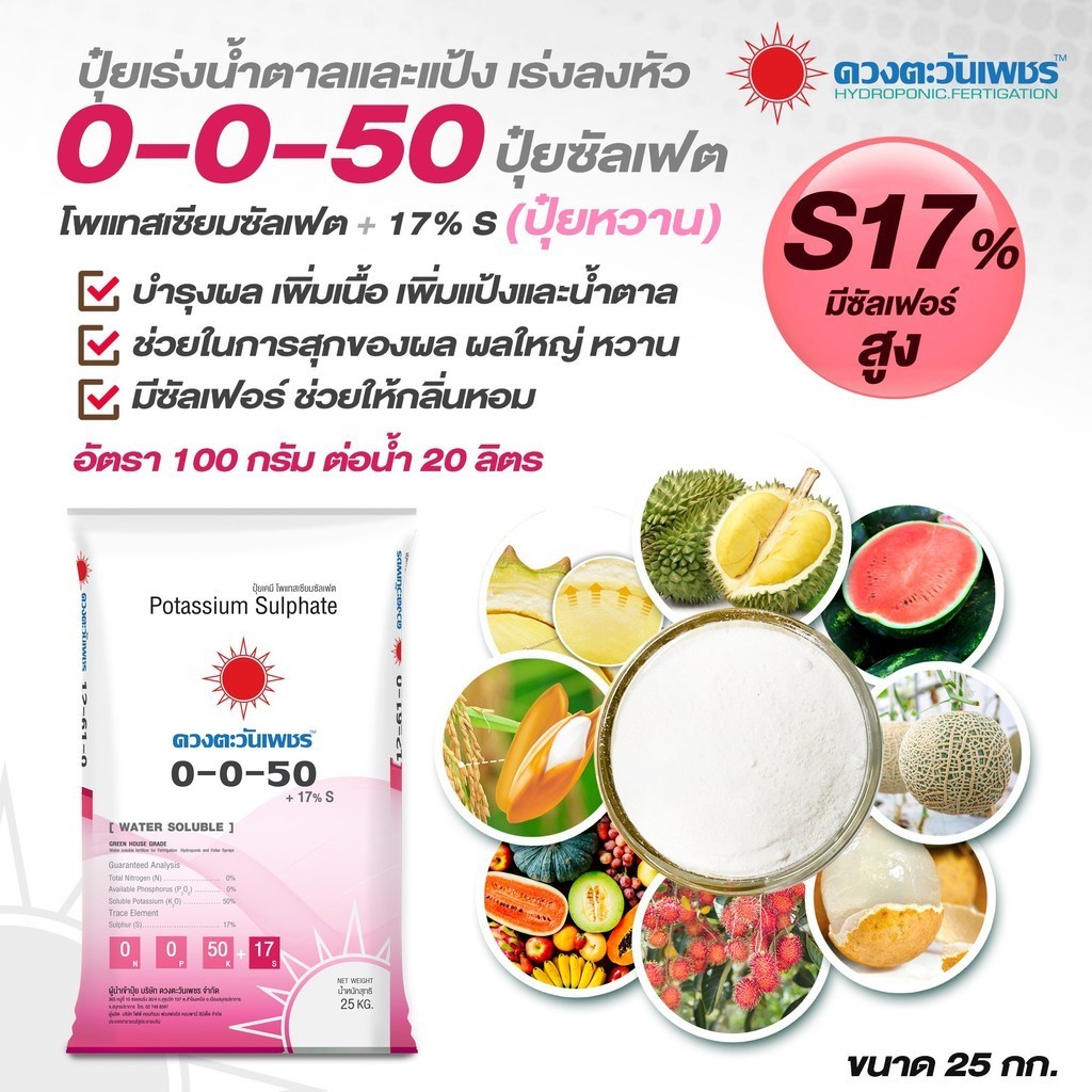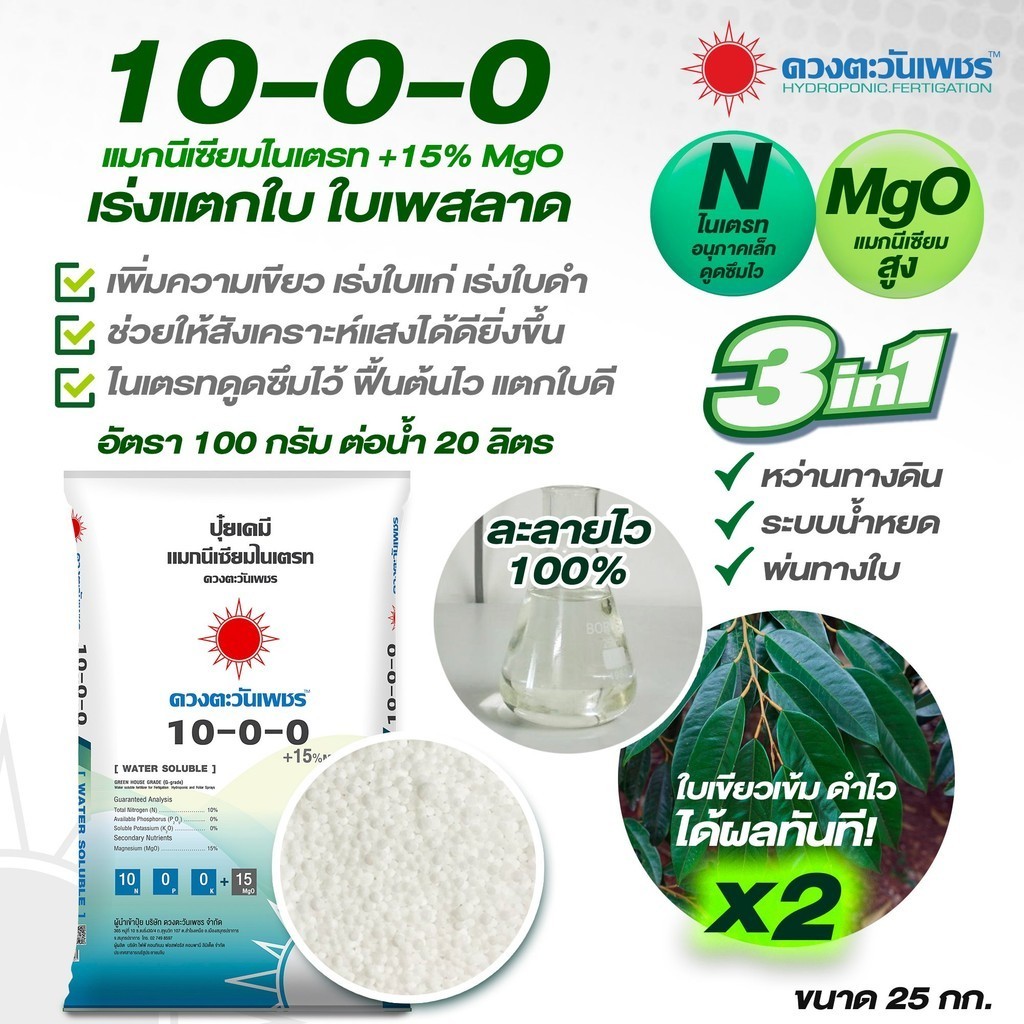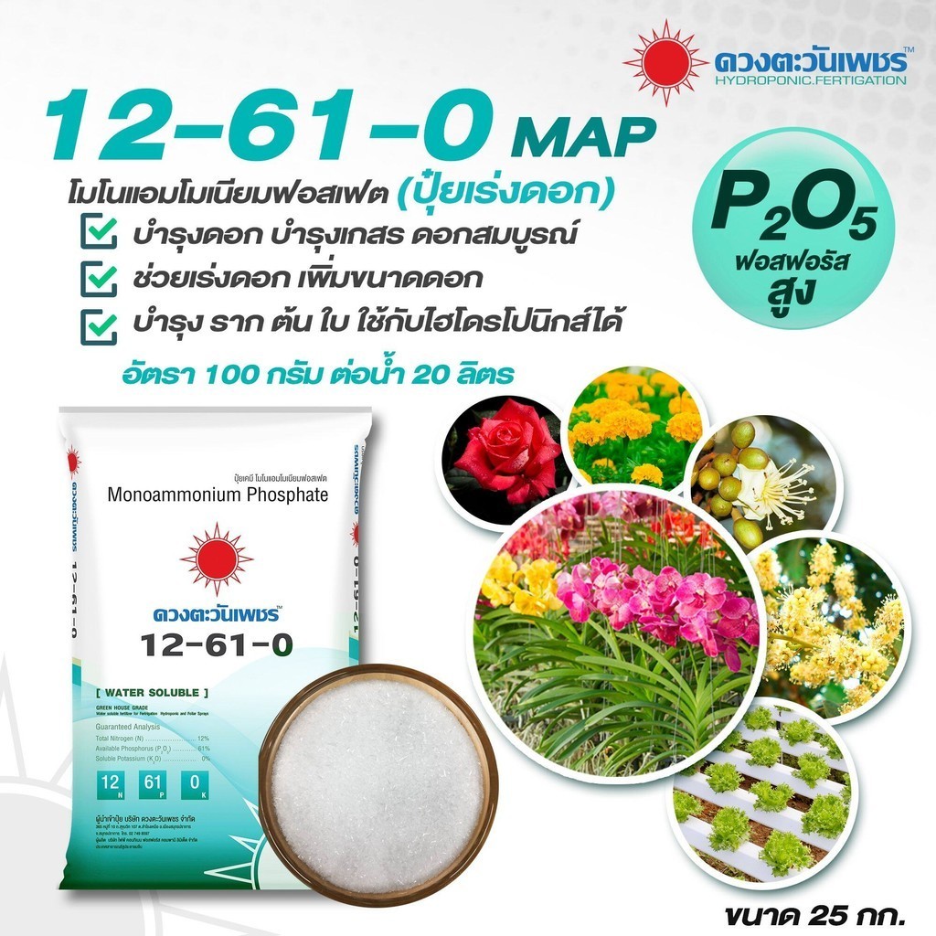 (ยกกระสอบ25kg) แม่ปุ๋ย ปุ๋ยเกล็ด 15-0-0 , 0-52-34 , 13-0-46 , 12-61-0 , 10-0-0 , 0-0-50 #ดวงตะวันเพชร