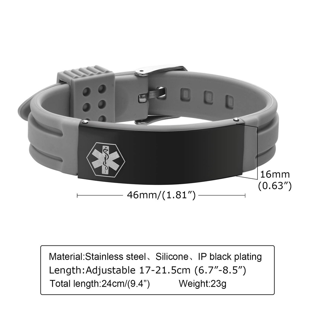 Meaeguet ส่วนบุคคล Medical Alert สร้อยข้อมือสําหรับผู้ชายผู้หญิง,แกะสลักฟรีสายรัดข้อมือ ID แบบปรับได้สร้อยข้อมือซิลิโคน