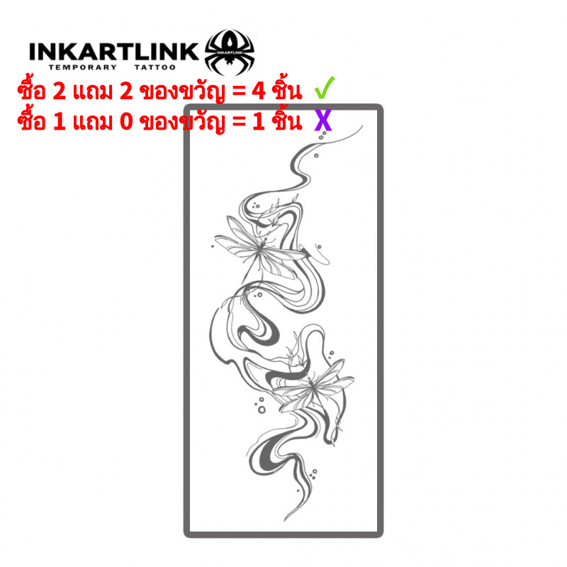 Inkartlink Fluid Floral Dragonfly กันน้ํา 15 วัน, รอยสักเฮนน่าชั่วคราว, รอยสักปลอม, รอยสักวิเศษกึ่งถาวร