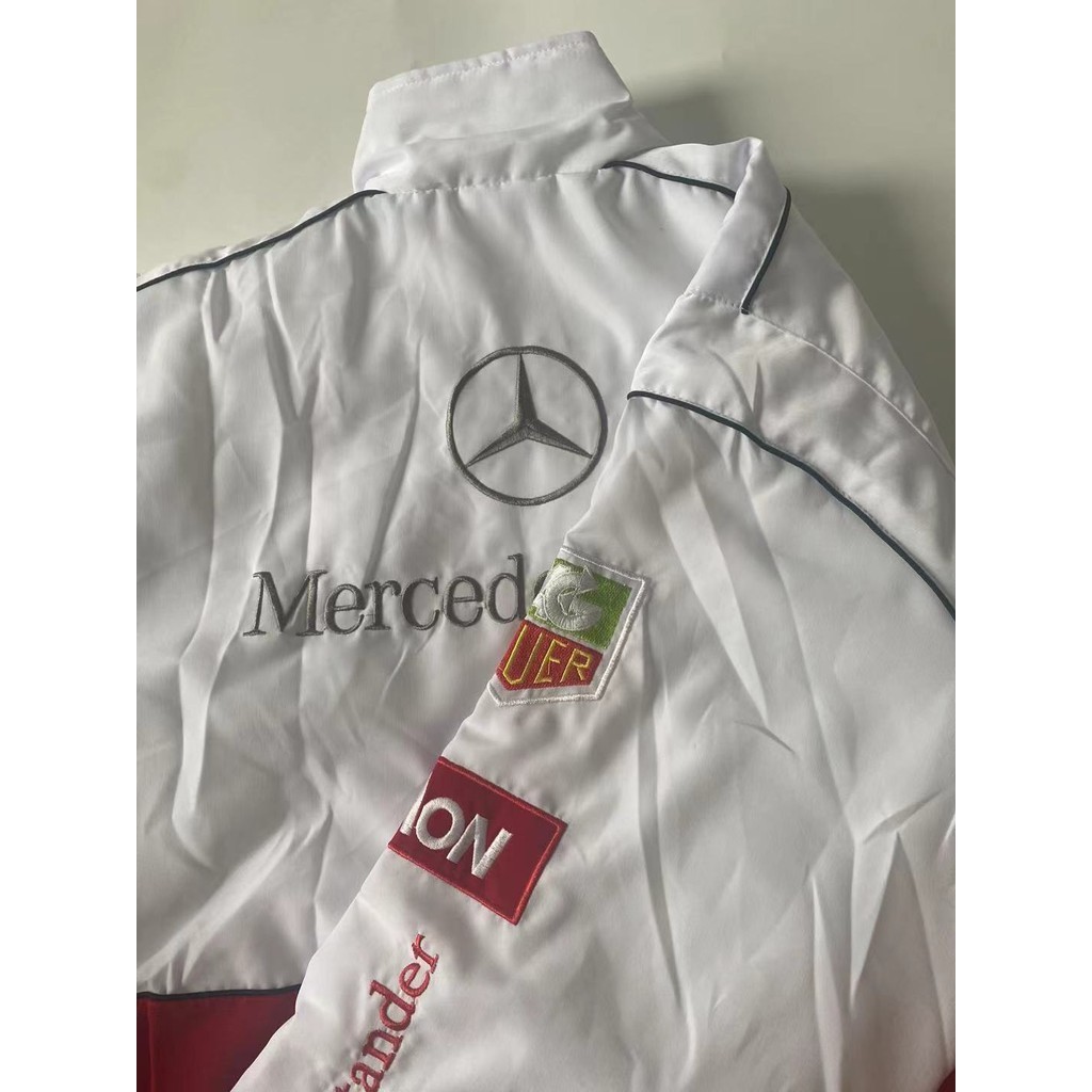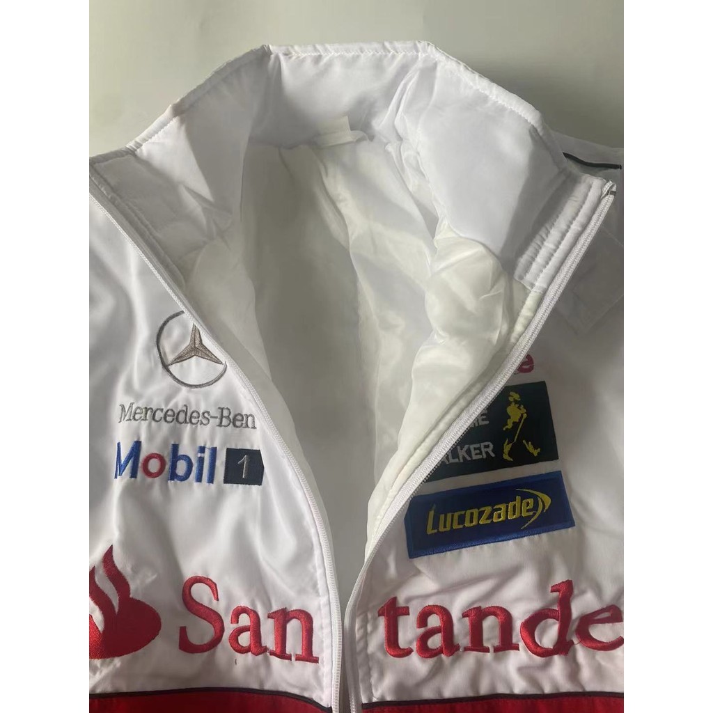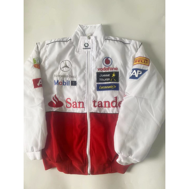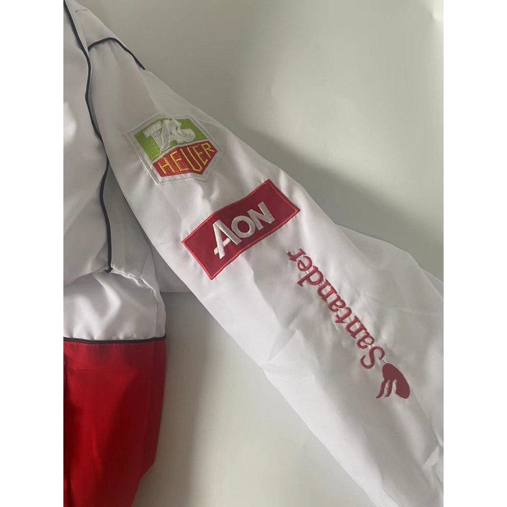 F1 เสื้อแจ็กเก็ตสูท สีแดง สีขาว สไตล์เรโทร สําหรับขี่รถจักรยานยนต์ 2024