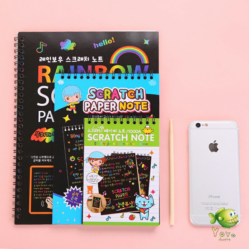 YOYO สมุดโน๊ตขูดสีรุ้งเล่มเล็กเกาหลี กระดาษวาดรูปสีสันสดใส พร้อมจัดส่ง children's picture book