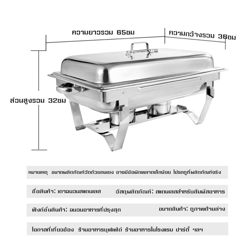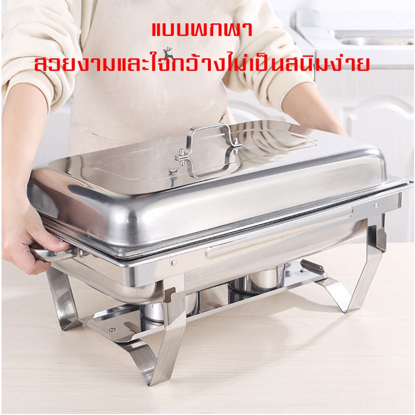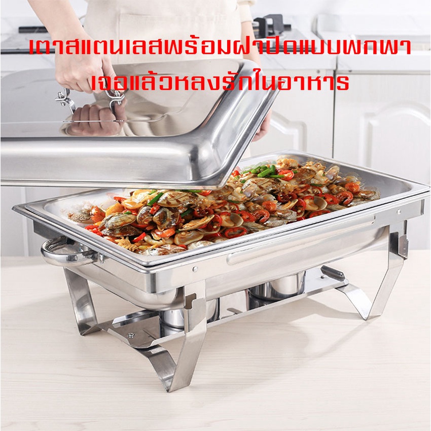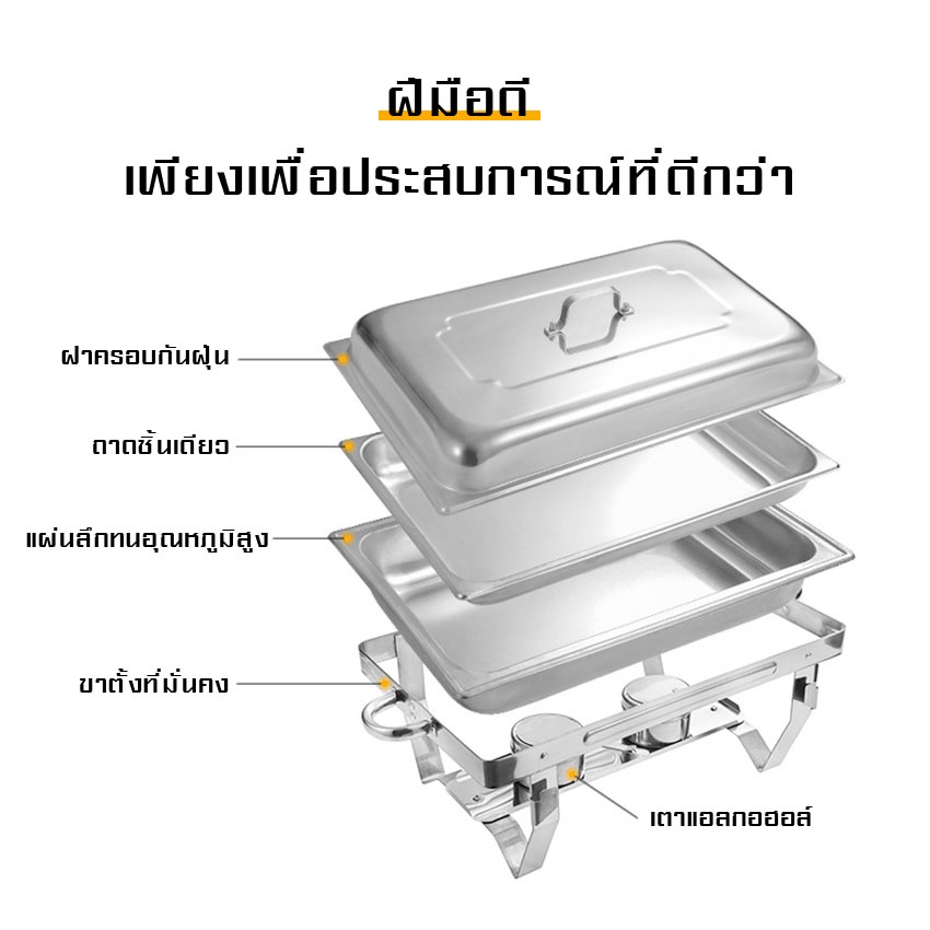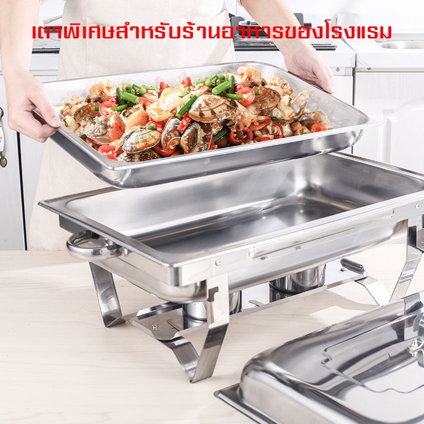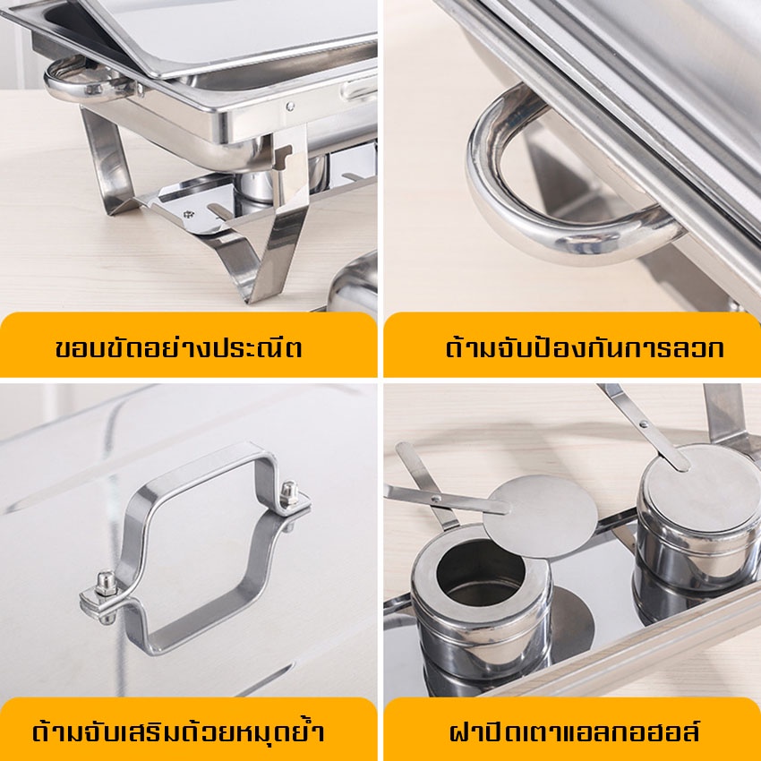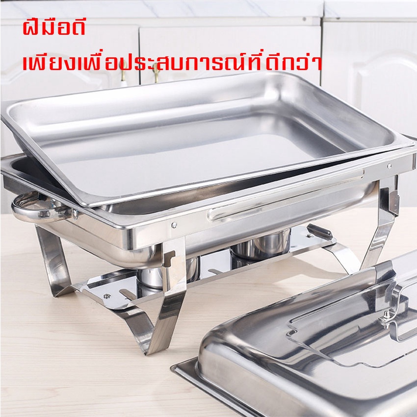 ถาดอาหาร ถาดสแตนเลส ถาดอุ่นบุฟเฟ่ต์ เตาแอลกอฮอล์คู่ (Food Garde) Chafing Dish หม้ออุ่นน้ำแกง ไม่เป็นสนิม