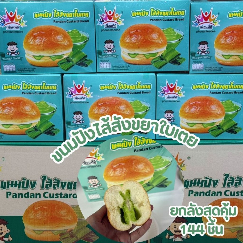 ยกลังสุดคุ้ม 144 ชิ้น ขนมปังเพื่อนทีดี ไส้สังขยาใบเตย