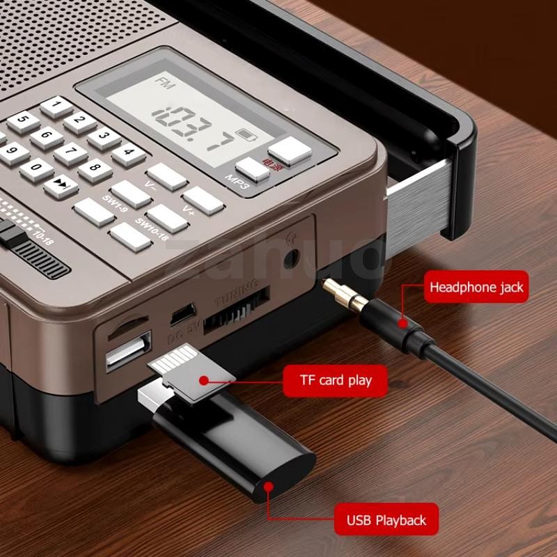 Sansui E35 วิทยุบลูทูธแบบพกพาดิจิตอล Retro ลําโพง HiFi Bass เครื่องเล่นเพลงพร้อมไฟฉาย LED FM/AM/SW Full Band รองรับ USB/TF Card Playback วิทยุ