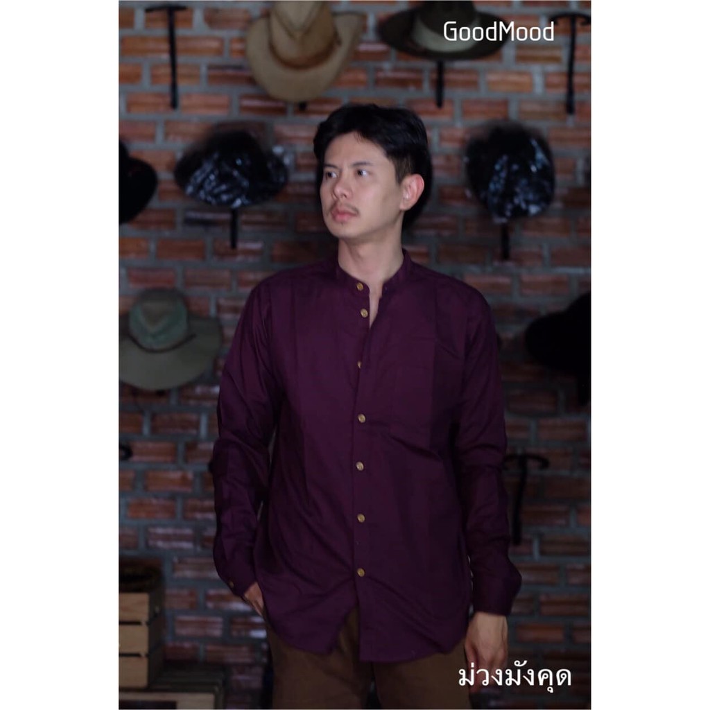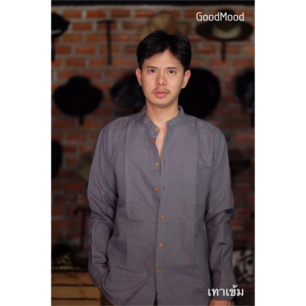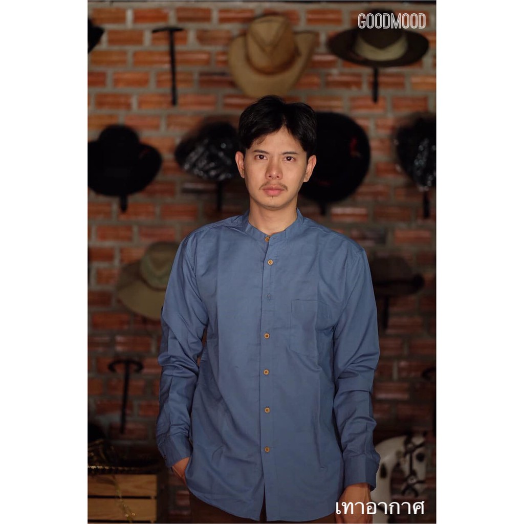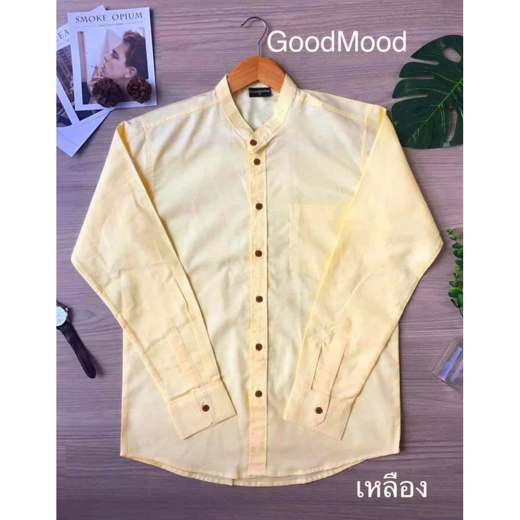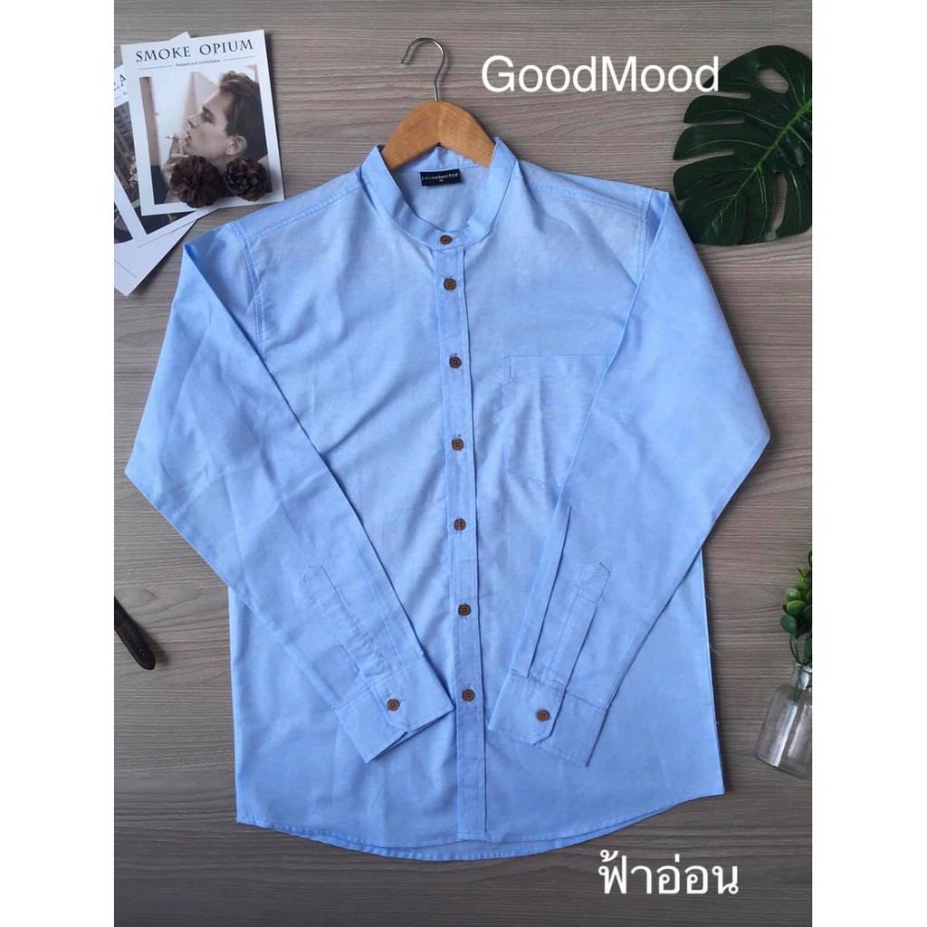 (ส่งทุกวัน ส่งเร็ว) เสื้อเชิ้ตคอจีนแขนยาวผ้าอ๊อกฟอด
