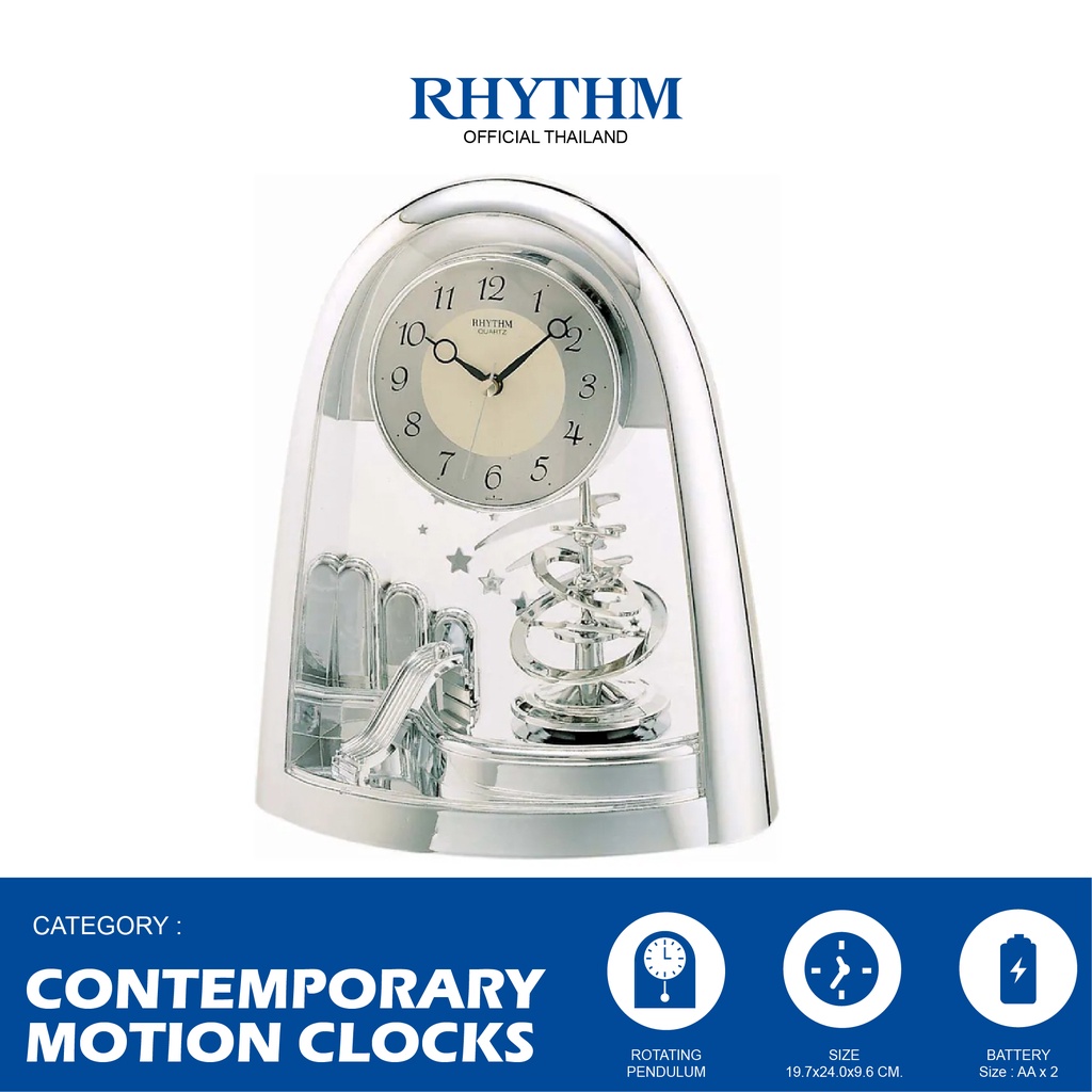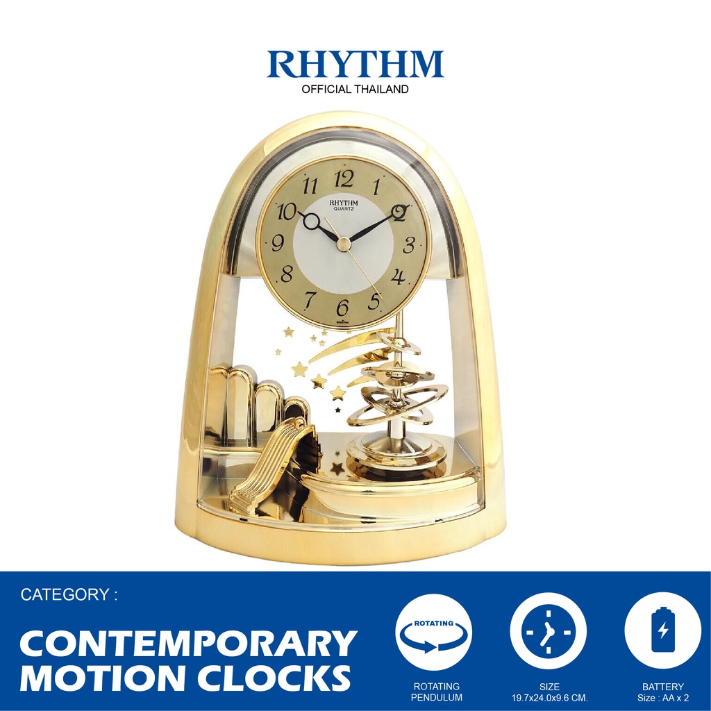 นาฬิกาตั้งโต๊ะ RHYTHM นาฬิกาตกแต่งบ้าน นาฬิกาสไตล์หรูหรา ระบบเดินเข็มของญี่ปุ่น 19x24 ซม-4SG607WS
