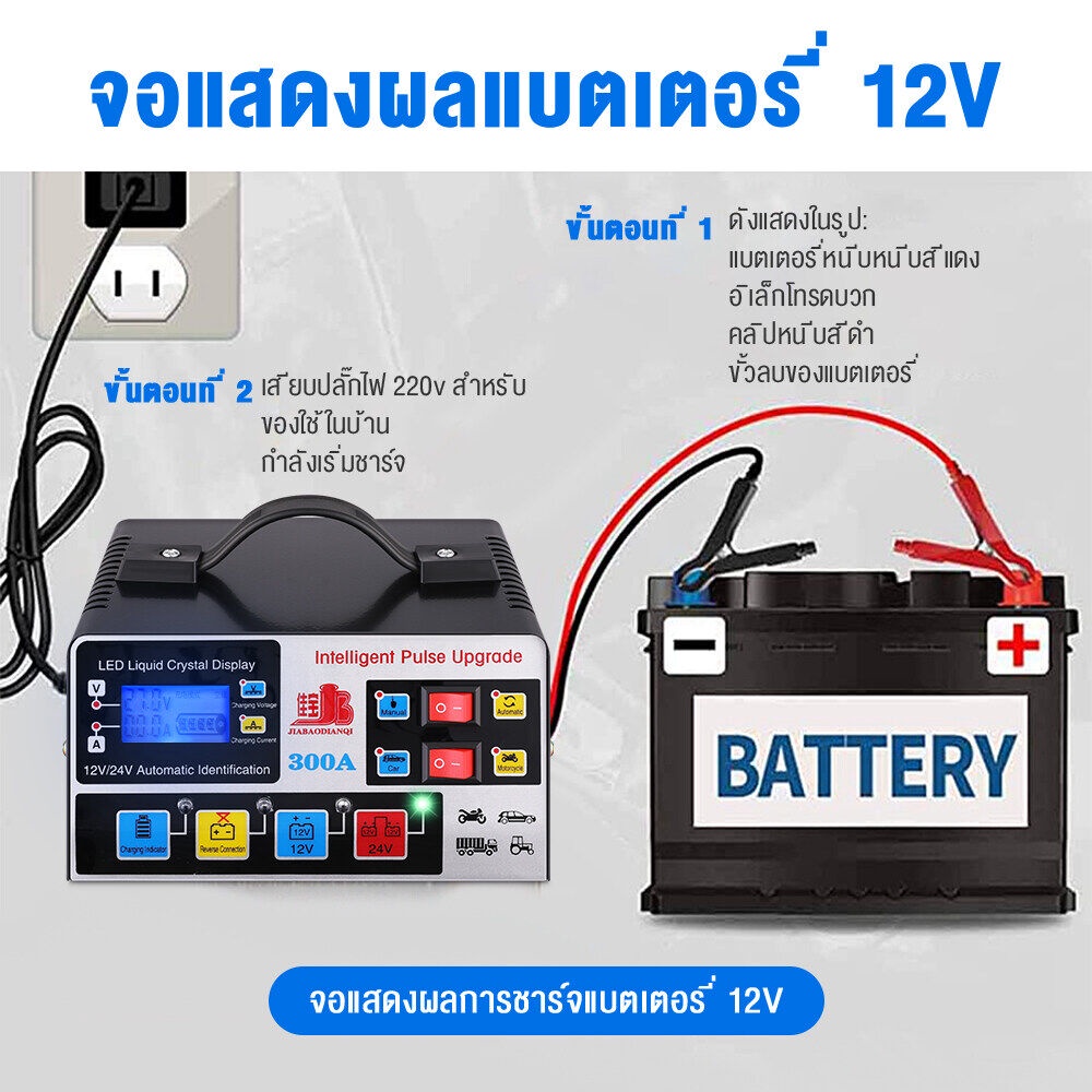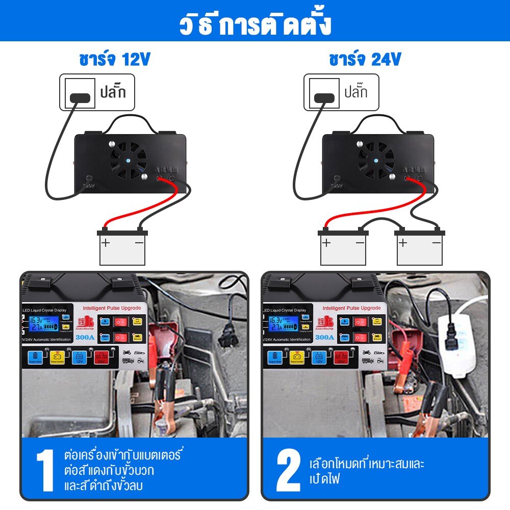 จัดส่งจาก Bangkok ใหม่!! เครื่องชาร์จแบตเตอรี่รถยนต์ 24V 12V เครื่องชาร์จแบตเตอรี่ เครื่องชาร์จอัจฉริยะและซ่อมพัลส์ เค รื่องชาร์จแบตเตอรี่รถยนต์ 6-180Ah Um