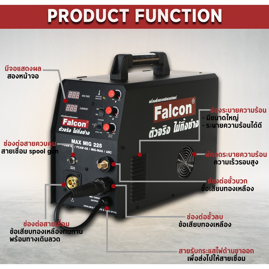 เครื่องเชื่อมMAX MIG 225 เครื่องเชื่อมซีโอทู ซีโอทูแบบไม่ใช้แก๊ส เครื่องเชื่อมFALCON
