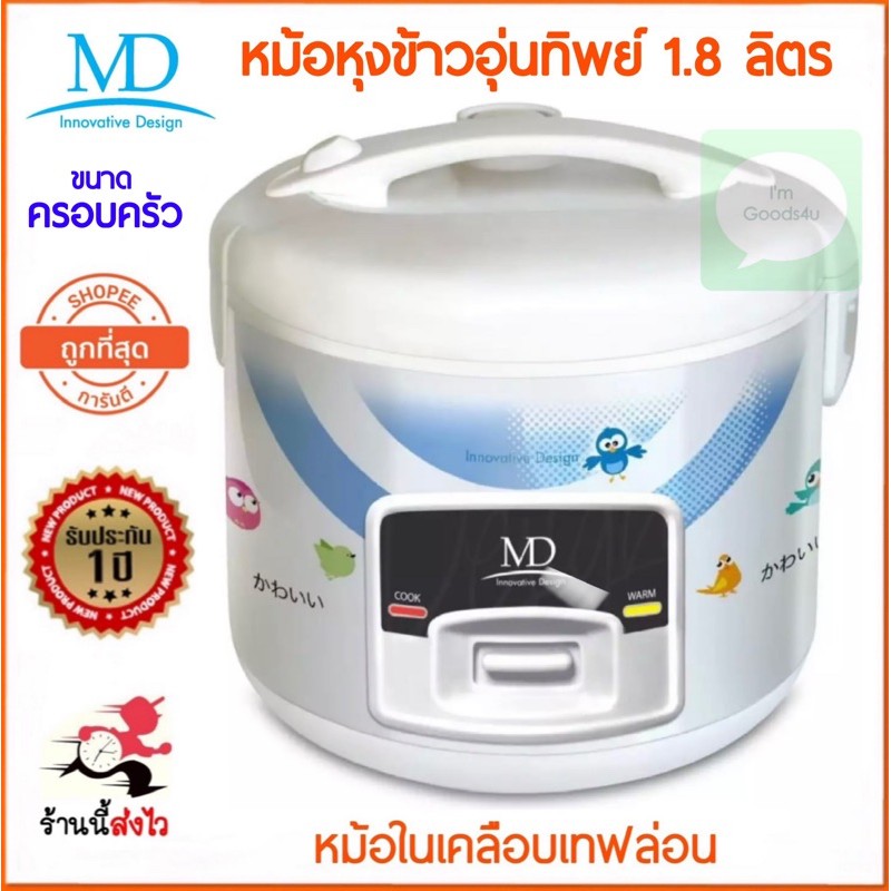 🍚OTTO,MD,JTL,SKG หม้อหุงข้าวอุ่นทิพย์ หม้อหุงข้าว 1.8 ลิตร เคลือบเทปล่อน