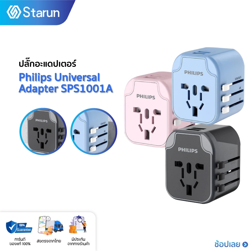 Philips Universal Adapter SPS1001A หัวแปลงปลั๊กไฟ ปลั๊กไฟusb