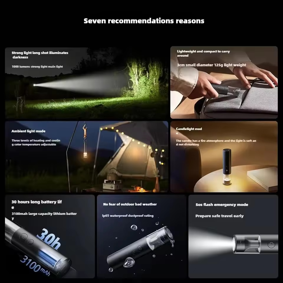 Xiaomi ไฟฉาย Mijia Multifunctional Portable Flashlight ไฟฉายพกพาอเนกประสงค์ ไฟฉายตั้งแคมป์ 1000 ลูเมน 3100mAh IP65 กันน้ํากลางแจ้ง