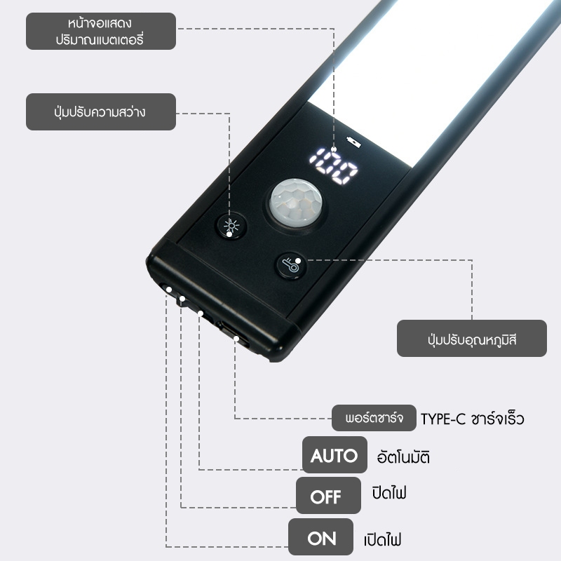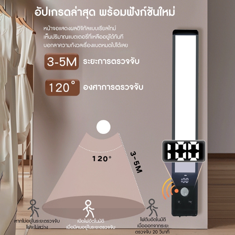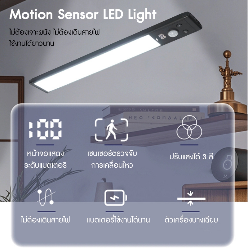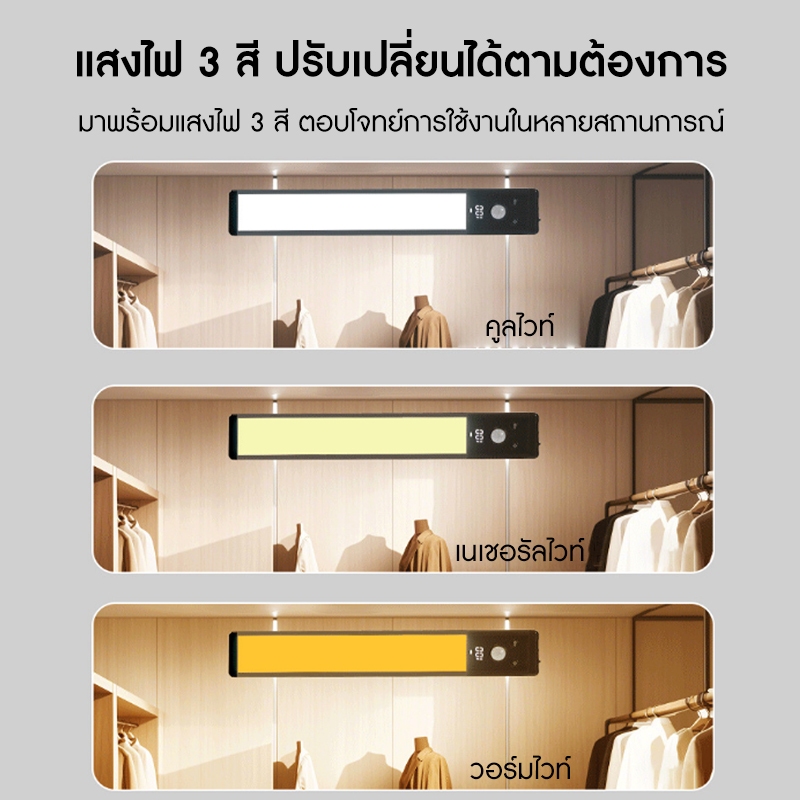 Motion Sensor LED Light 30CM LED ไฟเซ็นเซอร์ แม่เหล็ก TYPE-C ชาร์จได้ 3 สี โคมไฟติดผน ไฟตู้เสื้อผ้า บอกแบตเตอรี่ได้อย่างแม่นยำ