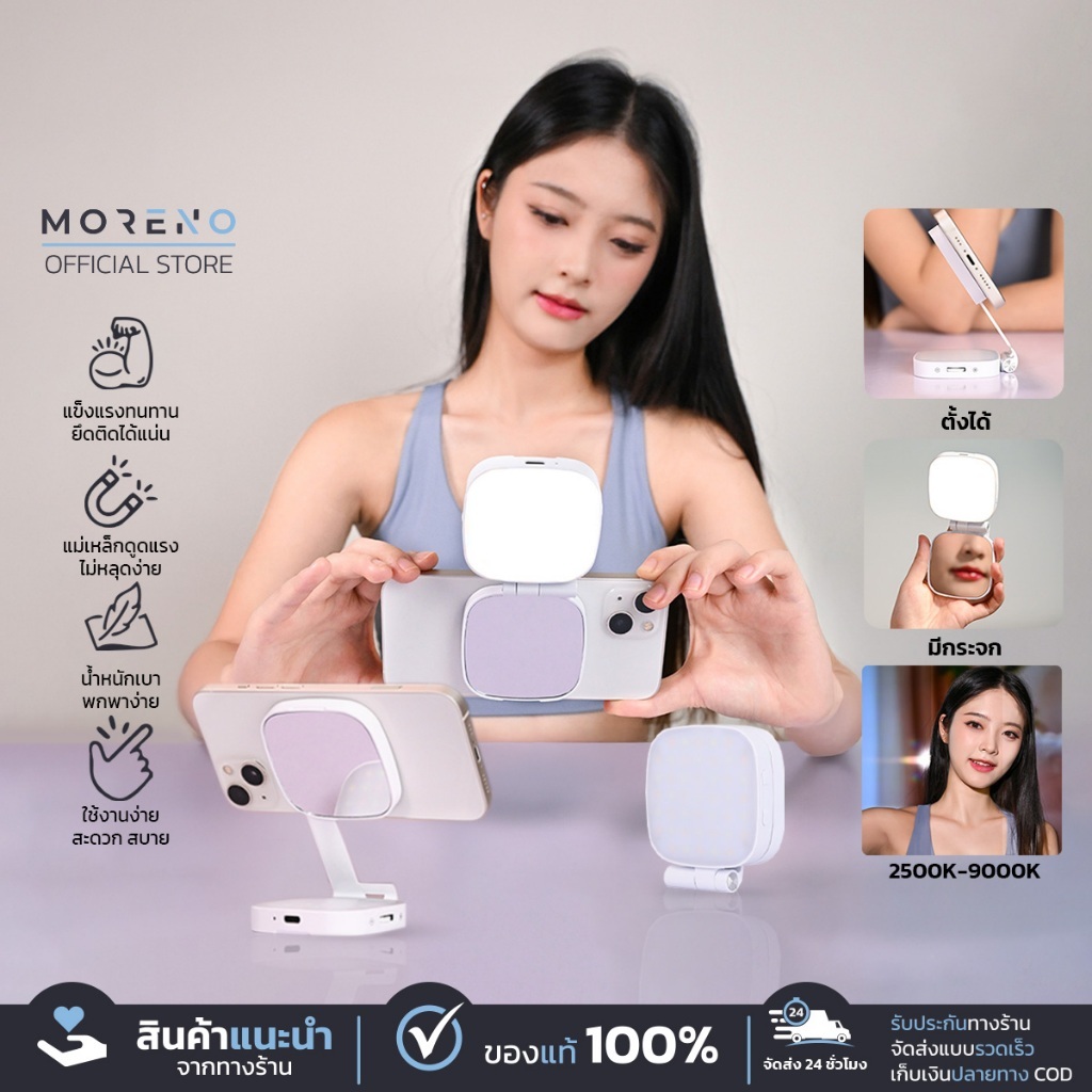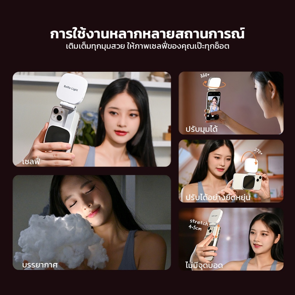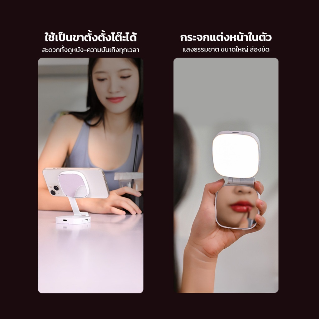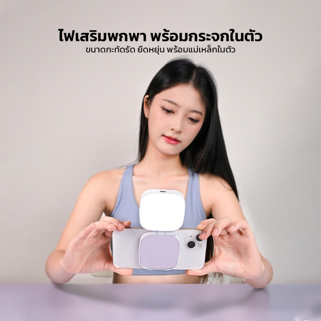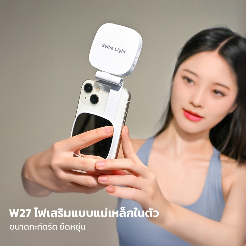 Magnetic Beauty Selfie Light with Mirror M27 ไฟติดโทรศัพท์พร้อมกระจก ไฟติดมือถือแบบแม่เหล็ก ไฟเสริมมือถือ อุปกรณ์สำหรับเซลฟี่