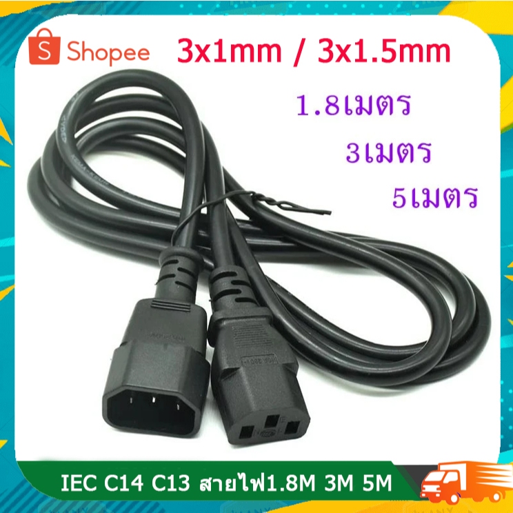 IEC C14 C13 สายไฟ1.8M 3M 5M UPS สาย Power Extension Cable 3x1.5mm / 3x1mm สำหรับ PC คอมพิวเตอร์