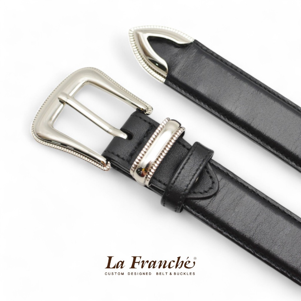 𝗟𝗮 𝗙𝗿𝗮𝗻𝗰𝗵𝗲 - 𝗙𝗮𝘀𝗵𝗶𝗼𝗻 𝘀𝗲𝘁 เข็มขัดหนังวัวแท้ Nappa สีดำ พร้อมหัวเข็มขัด #1L0079
