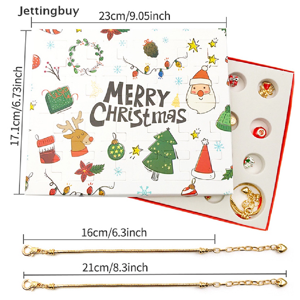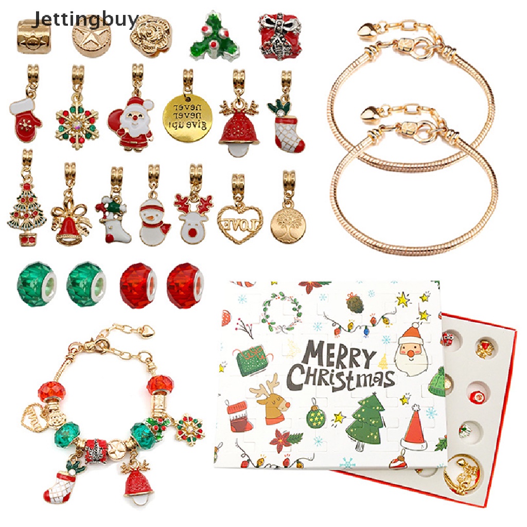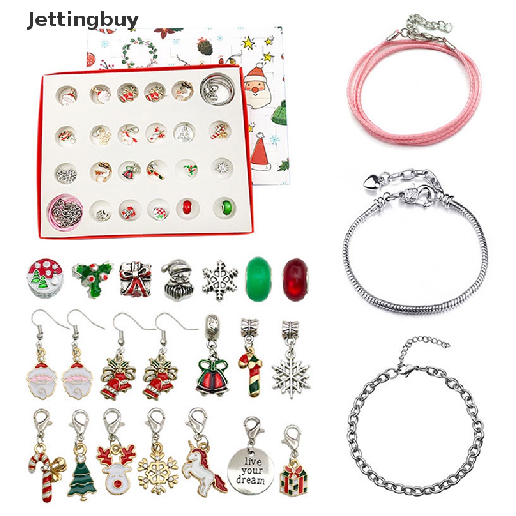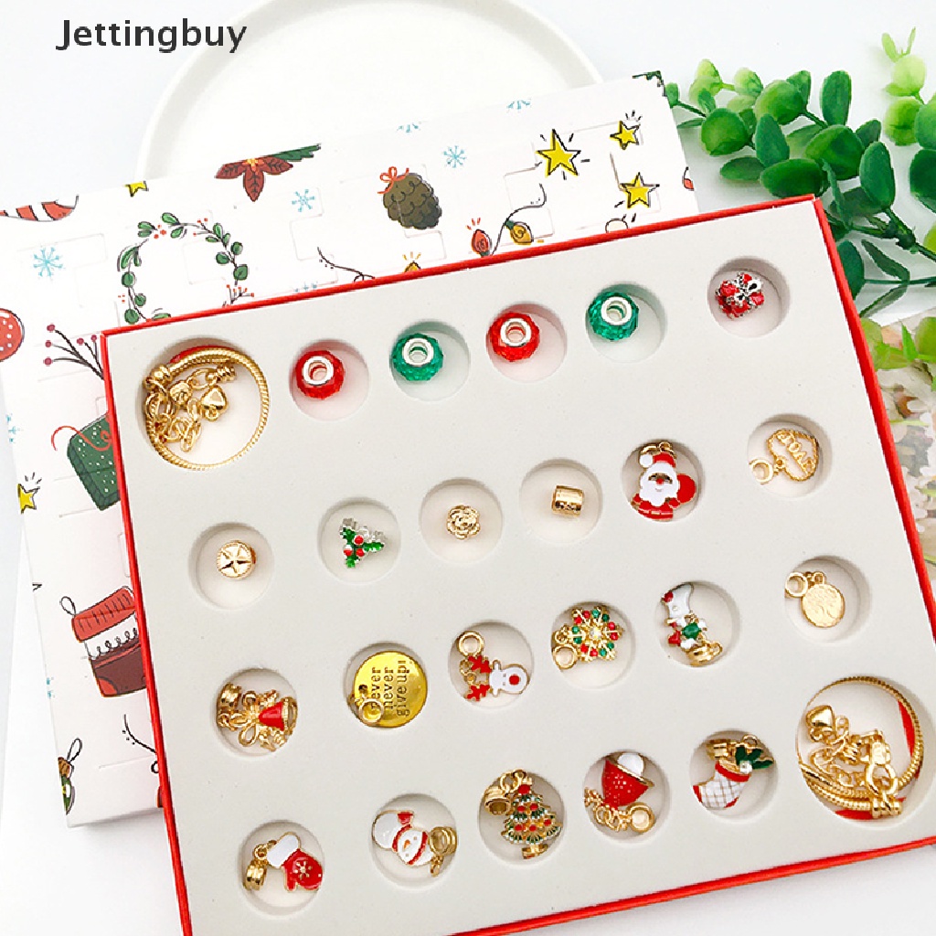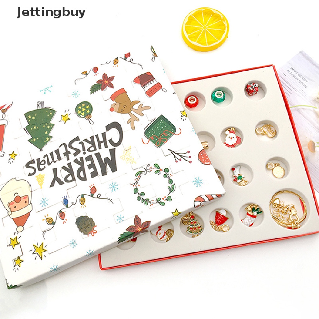 [Jettingbuy] 24 ชิ้นสร้อยคอจี้คริสต์มาสนับถอยหลังจุติปฏิทินคริสต์มาสธีม DIY สร้อยข้อมือคริสต์มาสแปลกใจกล่องของขวัญสต็อกใหม่