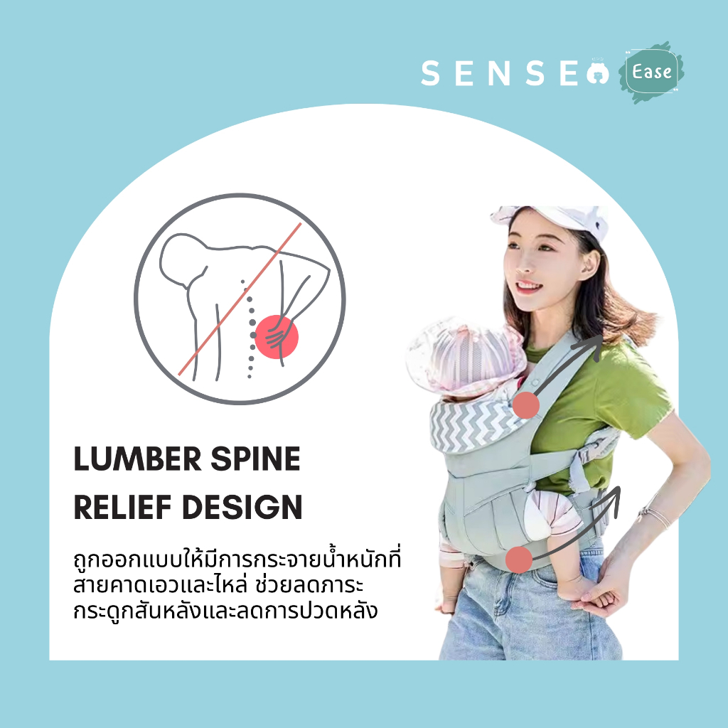 Sense Ease Baby carrier เป้อุ้ม ที่เหมาะสำหรับทารกแรกคลอด พยุงสันหลัง ไม่ใช้โฟม ไม่กดทับแผลคลอด ลดปวดหลัง