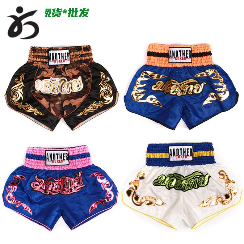 ANOTHERBOXER กางเกงขาสั้นมวยไทยหลากสี ต่อสู้ Sanda ศิลปะการต่อสู้ กางเกงขาสั้นกีฬาต่อสู้การฝึกอบรม IAXV