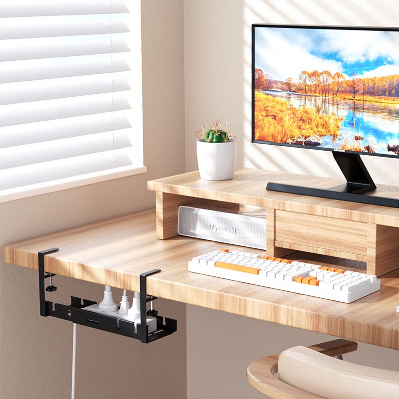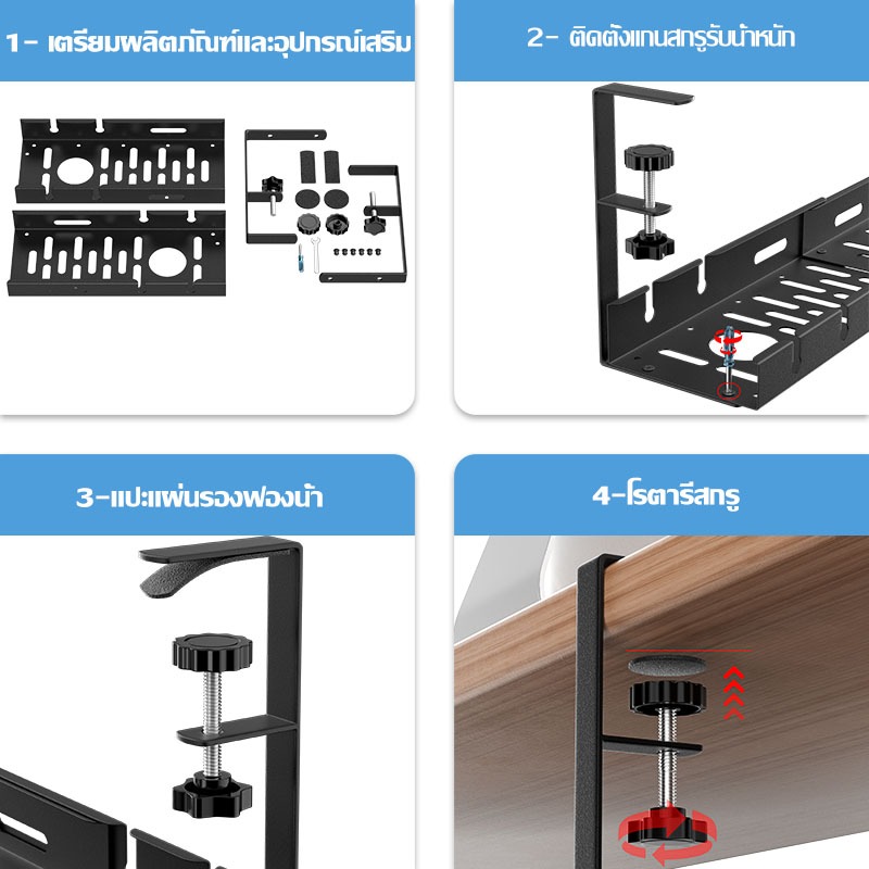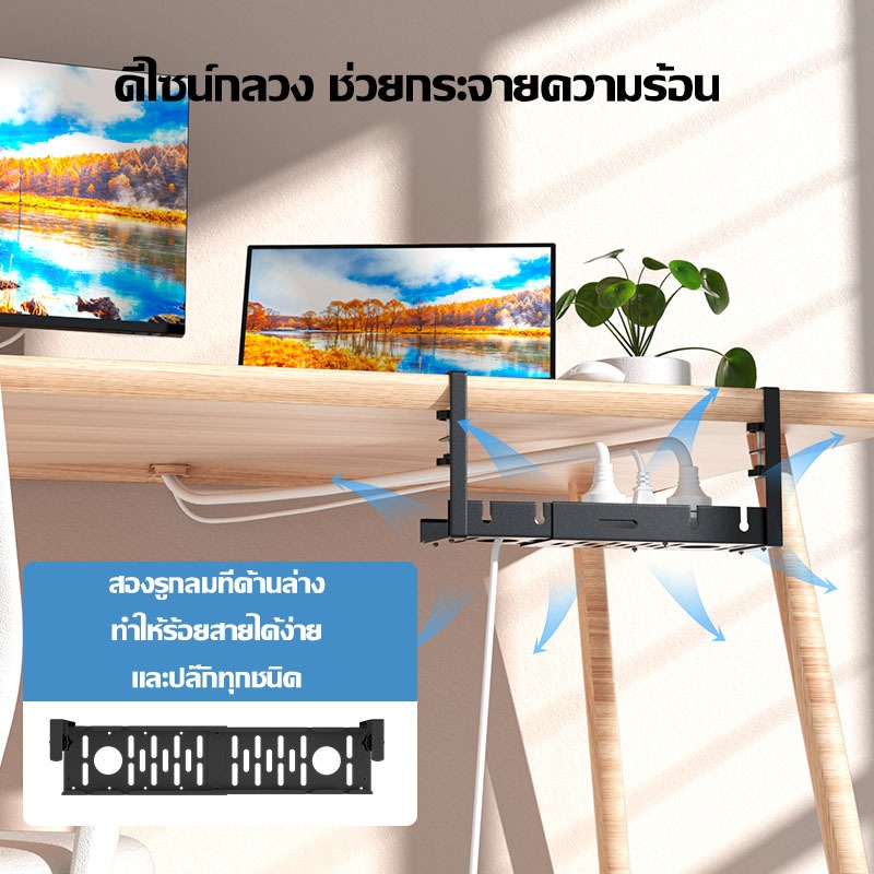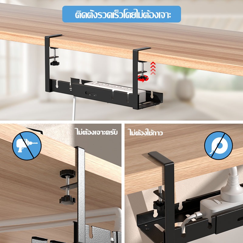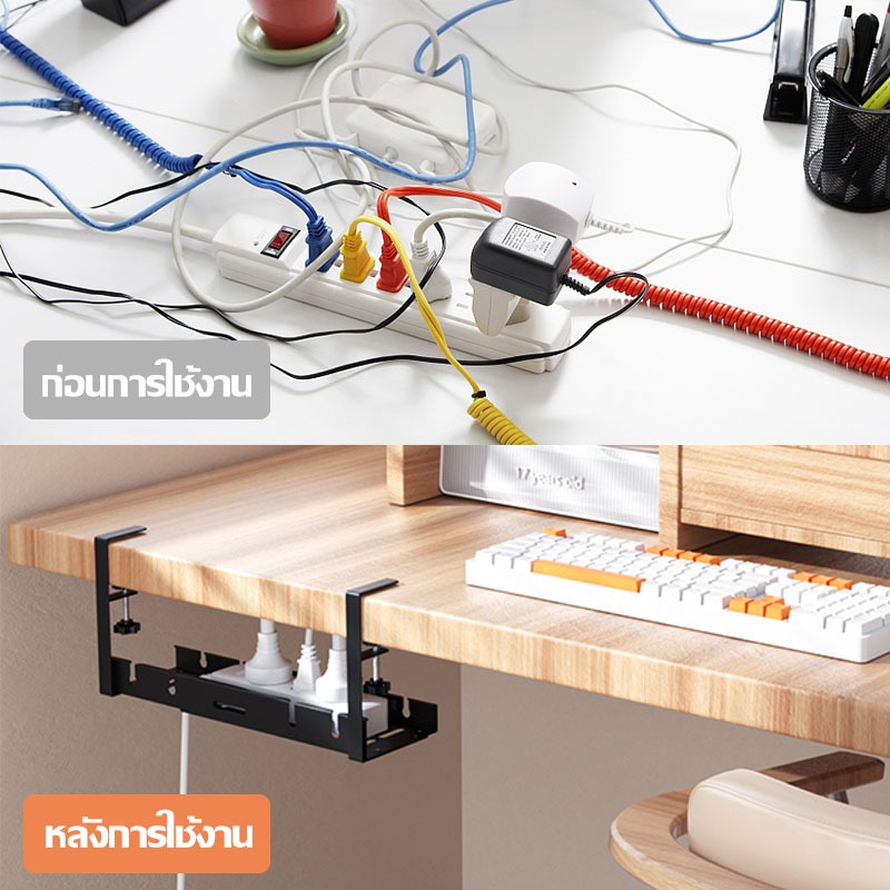 ปรับขนาดได้ 29cm-53cm รางเก็บสายไฟใต้โต๊ะ ไม่ต้องเจาะรู ทนทาน พร้อมแคลมป์ สําหรับจัดระเบียบบ้าน